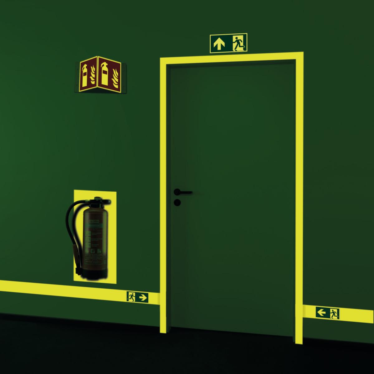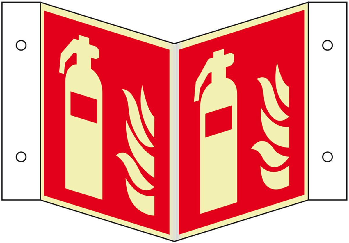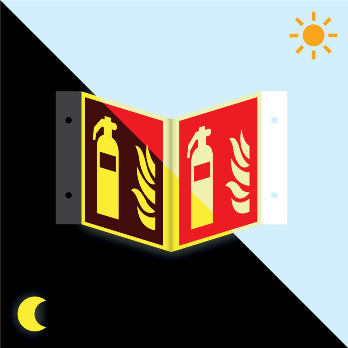 Lang nachleuchtendes PERMALIGHT® Brandschutzzeichen in Form eines Nasenschildes für die eindeutige Kennzeichnung des Feuerlöschers aus beiden Richtungen.