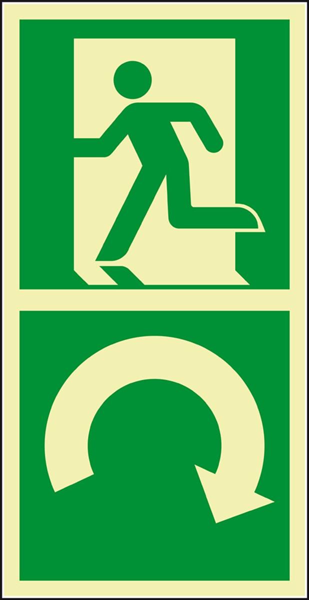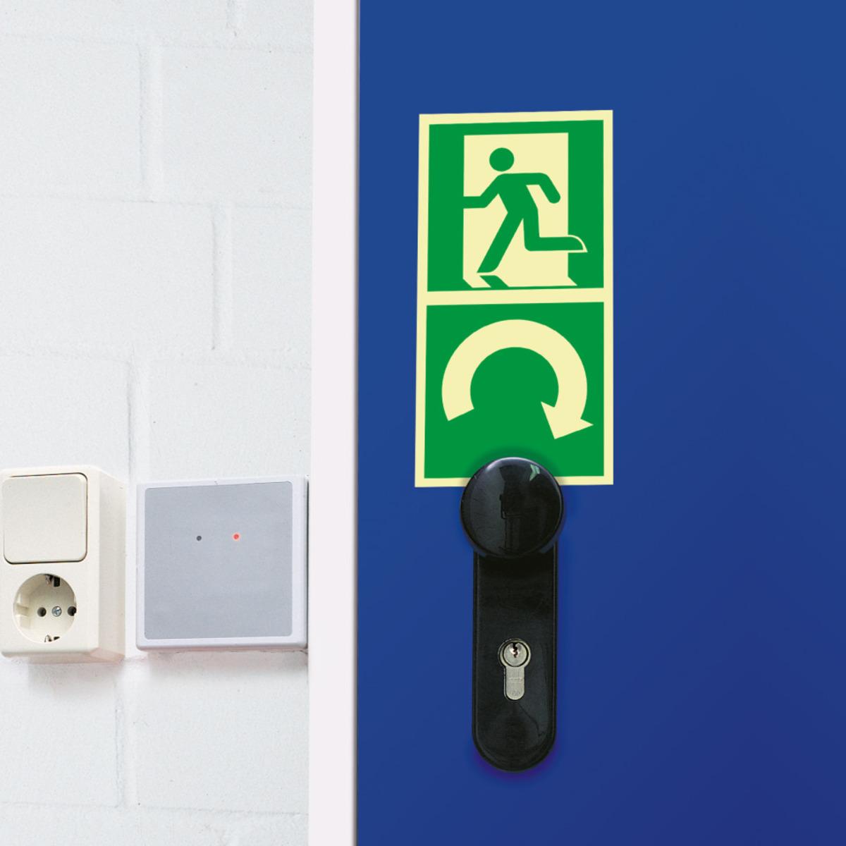 Lang nachleuchtender PERMALIGHT® Notausgang-Hinweisaufkleber für den Drehknopf.