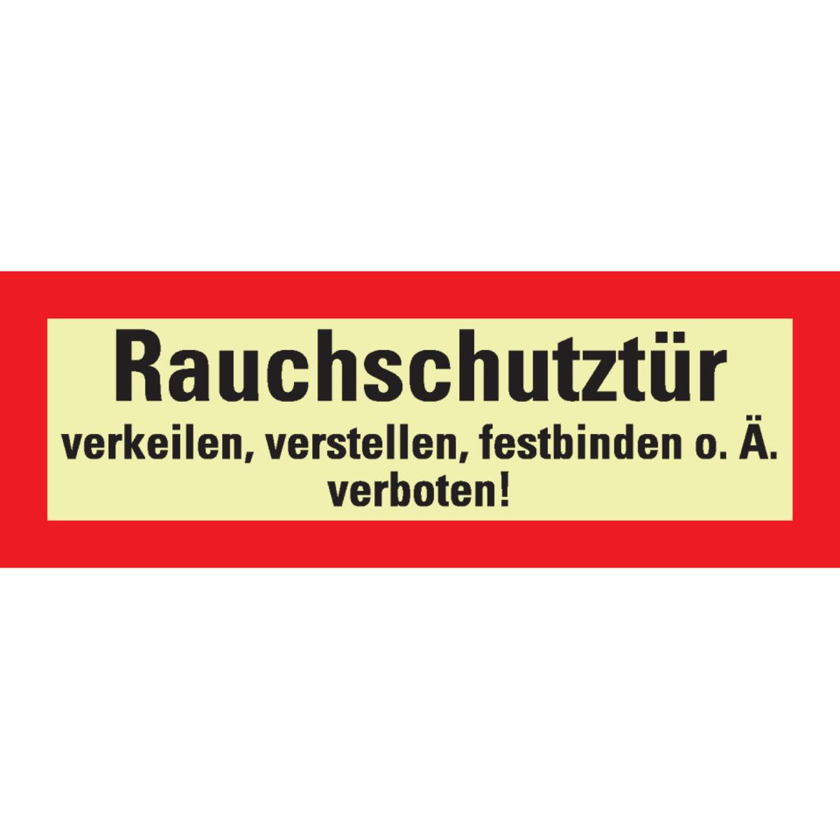 Lang nachleuchtendes PERMALIGHT® Feuerwehrschild "Rauchschutztür verkeilen verboten", geeignet für optische Sicherheitsleitsysteme