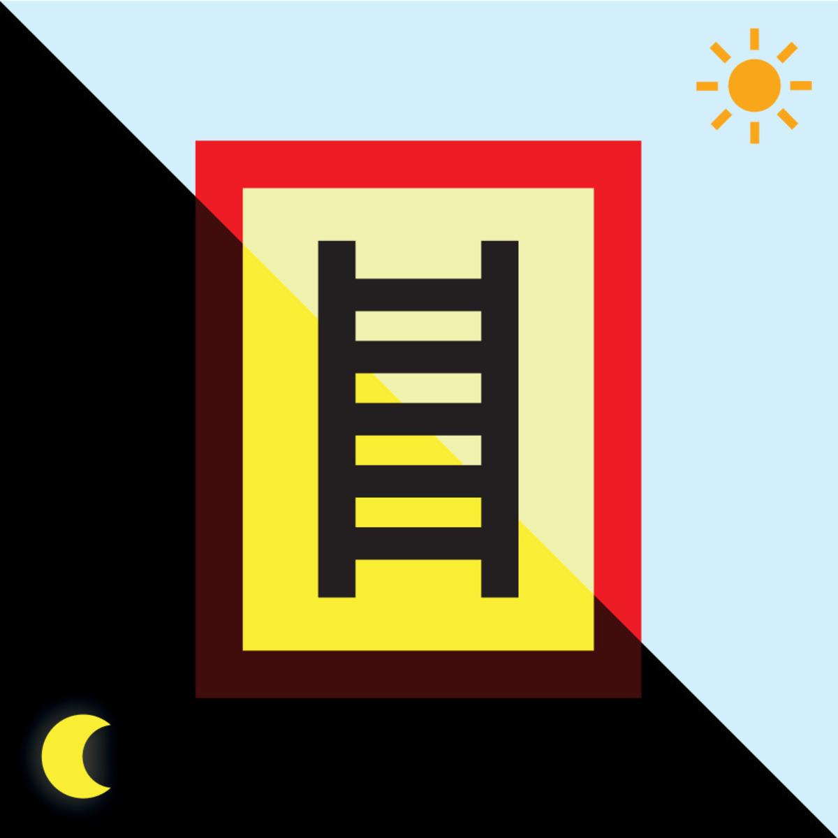 Lang nachleuchtendes PERMALIGHT® Feuerwehrschild als Hinweis auf eine geeignete Stelle zum Anleitern, geeignet für optische Sicherheitsleitsysteme