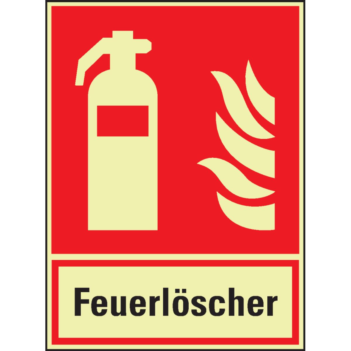 Lang nachleuchtendes PERMALIGHT® Kombi-Brandschutzzeichen, welches durch Piktogramm und Text auf einen Feuerlöscher im Kennzeichnungsbereich hinweist.
