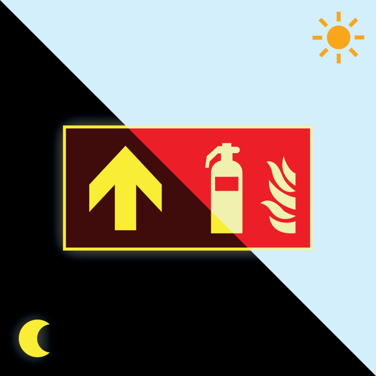 PERMALIGHT® power Kombi-Brandschutzzeichen nachleuchtend Feuerlöscher, Richtungspfeil oben ASR/ISO