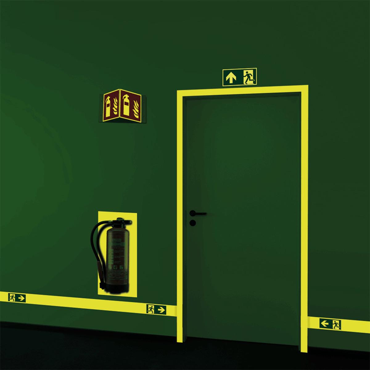 Mit dem langnachleuchtenden PERMALIGHT® power Klebeband mit Rettungszeichen und Richtungspfeil sorgen Sie für eine bessere Orientierung und schützen die Leben Ihrer Mitarbeiter und/oder Besucher, indem Sie Rettungswege eindeutig kennzeichnen. Ideal bei Stromausfall oder Dunkelheit und für optische Sicherheitsleitsysteme.