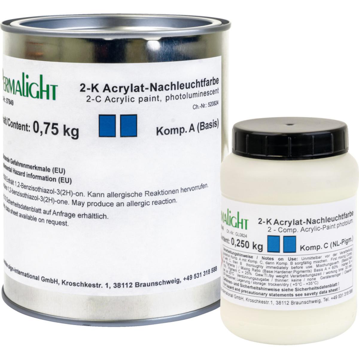 Lang nachleuchtende Farbe für Boden- und Wandmarkierungen, für optische Sicherheitsleitsysteme geeignet. Kann gerollt, gestrichen oder gespritzt werden und ist für Belastungen durch Fußgänger- und Werksverkehr geeignet. Beständig gegen verdünnte Säuren und Laugen, Alkalien, Fette, Öle und viele Chemikalien. 8 Stunden nach Auftragung ist die Farbe trocken, voll belastbar ist sie nach 3-4 Tagen.