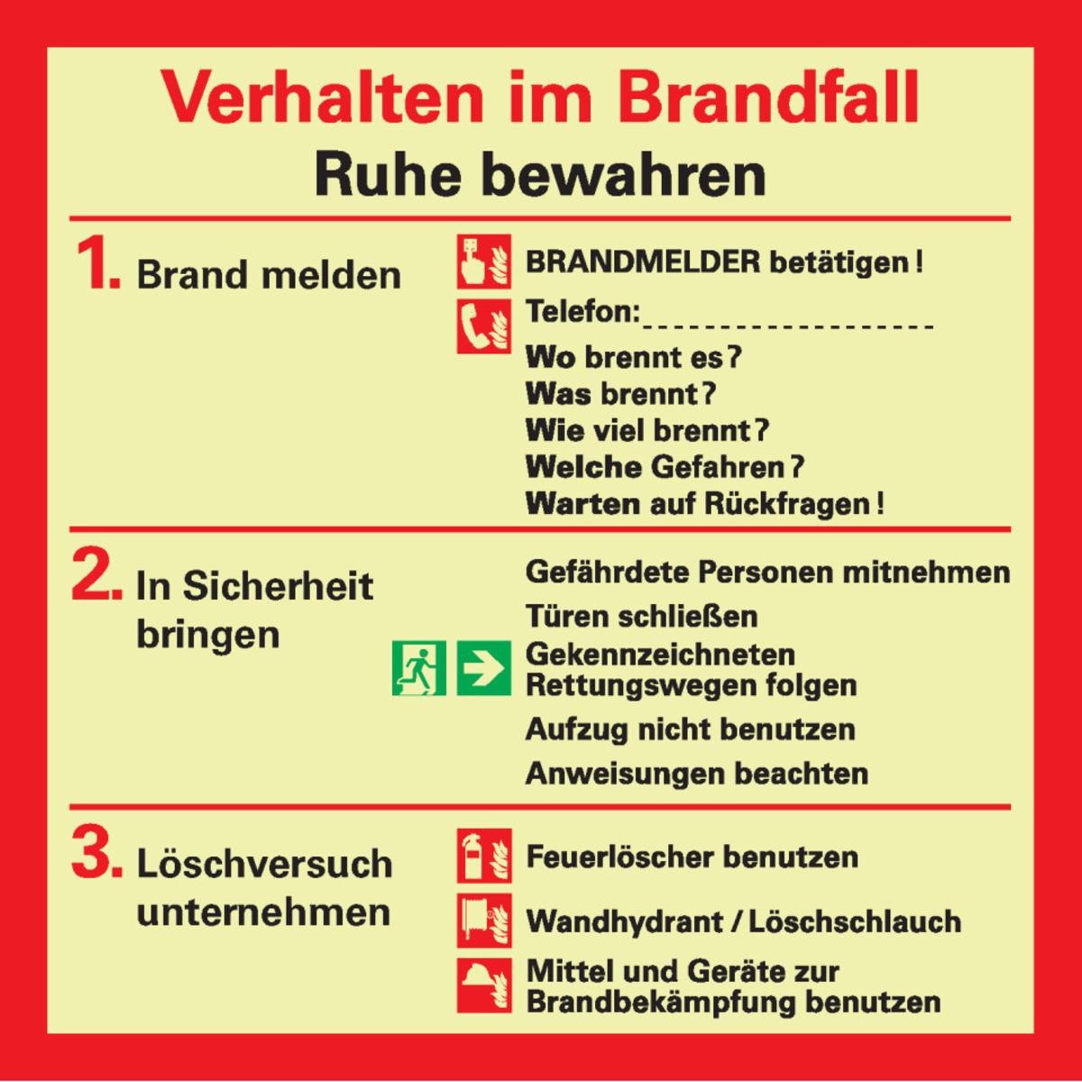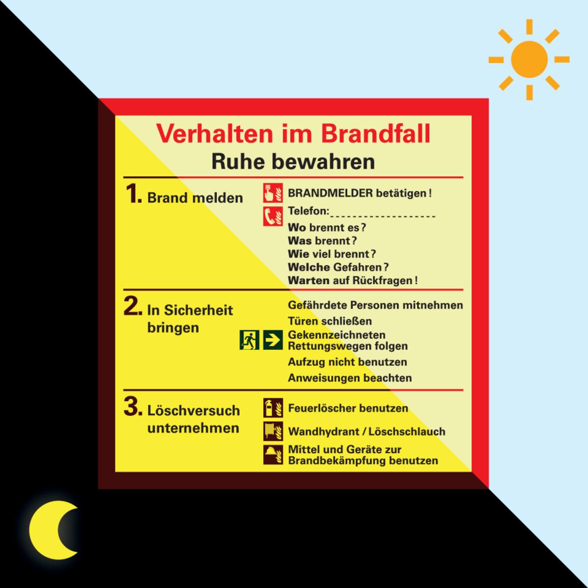 Lang nachleuchtender PERMALIGHT® Notfallplan "Verhalten im Brandfall", geeignet für optische Sicherheitsleitsysteme