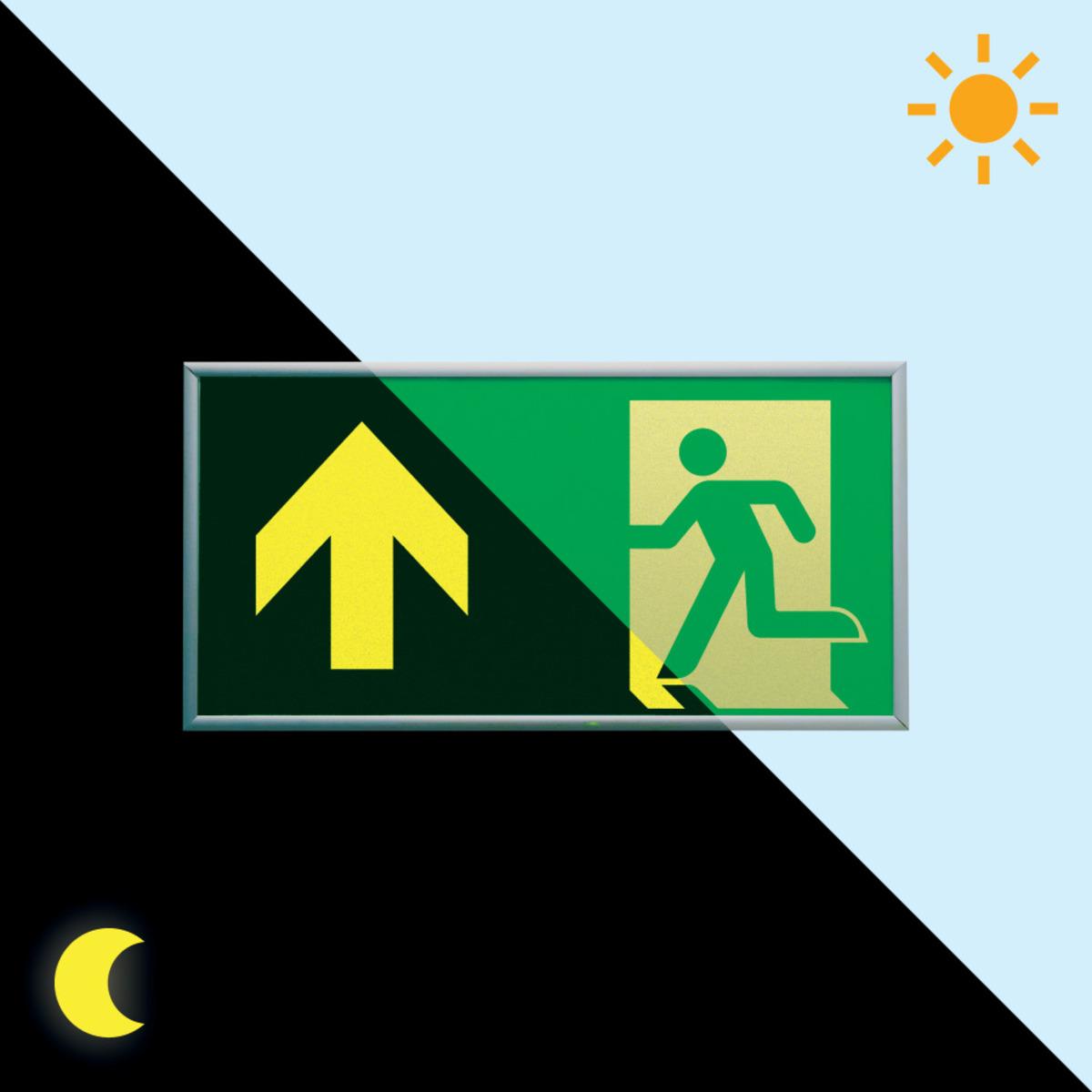 Langnachleuchtendes PERMALIGHT® Rettungszeichen im Rahmen zur Beschilderung von Rettungswegen