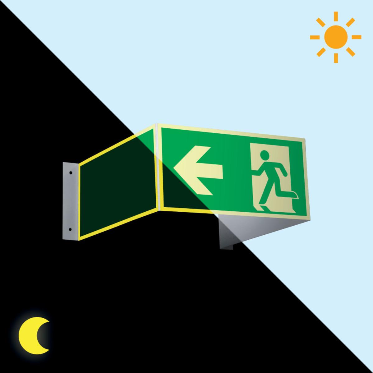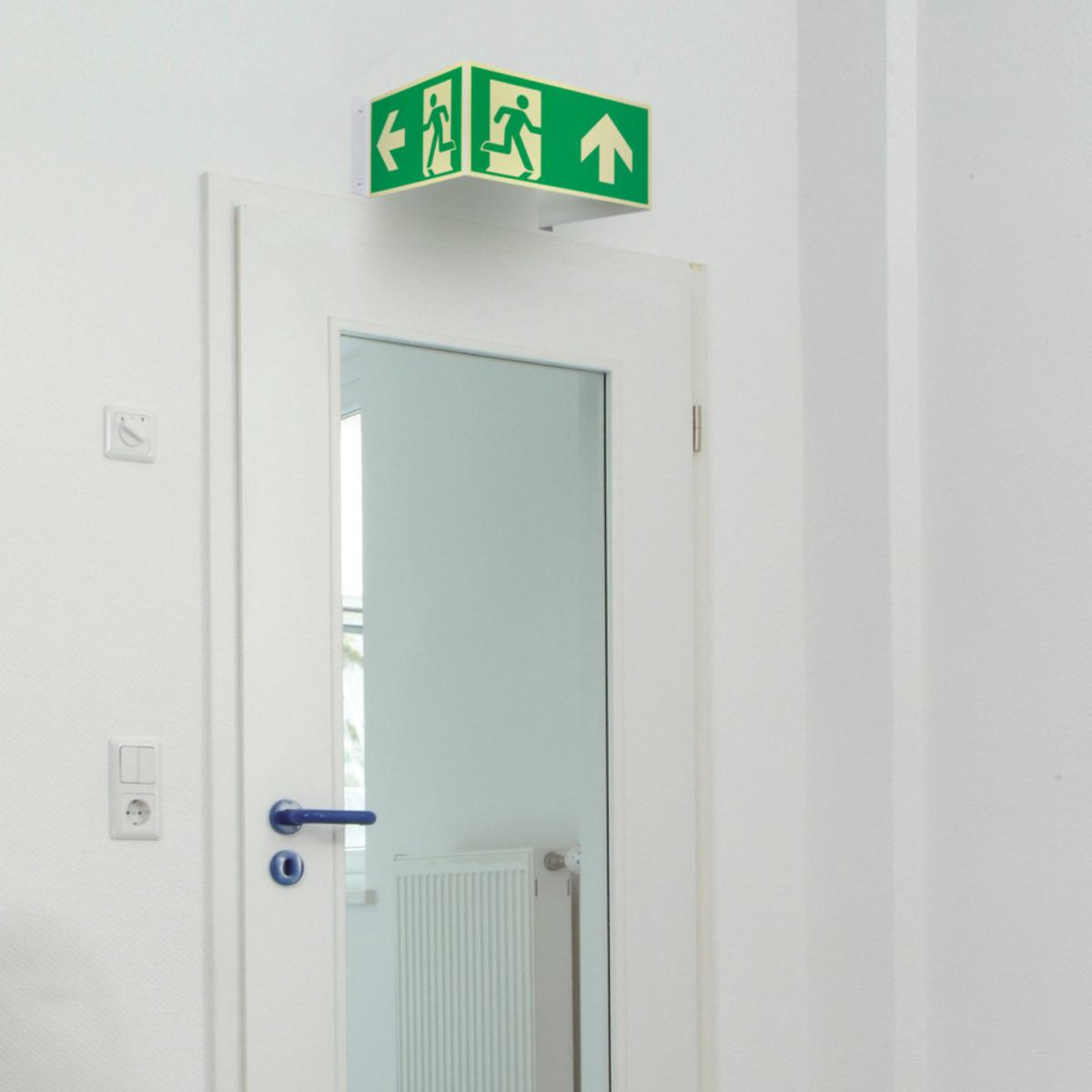 Lang nachleuchtendes PERMALIGHT® Rettungszeichen in 3D-Optik, welches den Notausgang in gerader Richtung kennzeichnet.