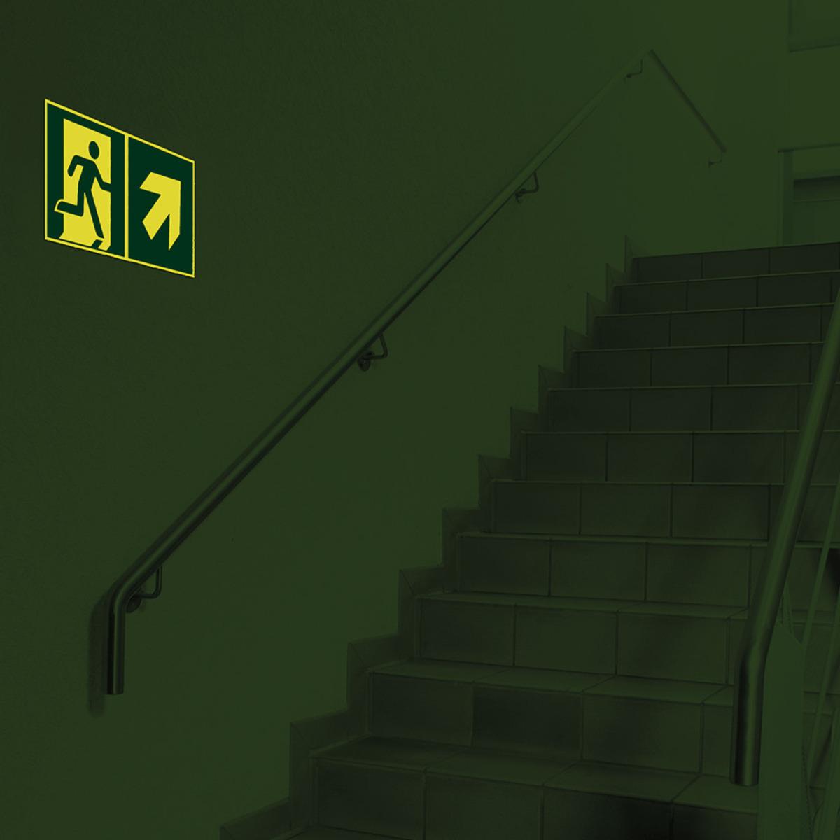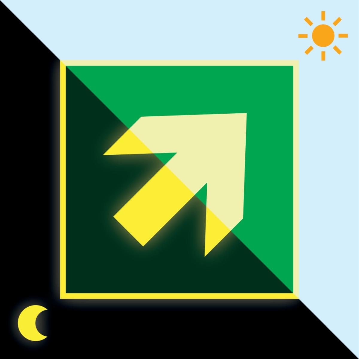 Mit dem langnachleuchtenden PERMALIGHT® power Zusatzzeichen "Rettungspfeil diagonal" schützen Sie Leben und Gesundheit Ihrer Mitarbeiter und/oder Besucher, indem Sie Rettungswege und Notfalleinrichtungen eindeutig kennzeichnen.