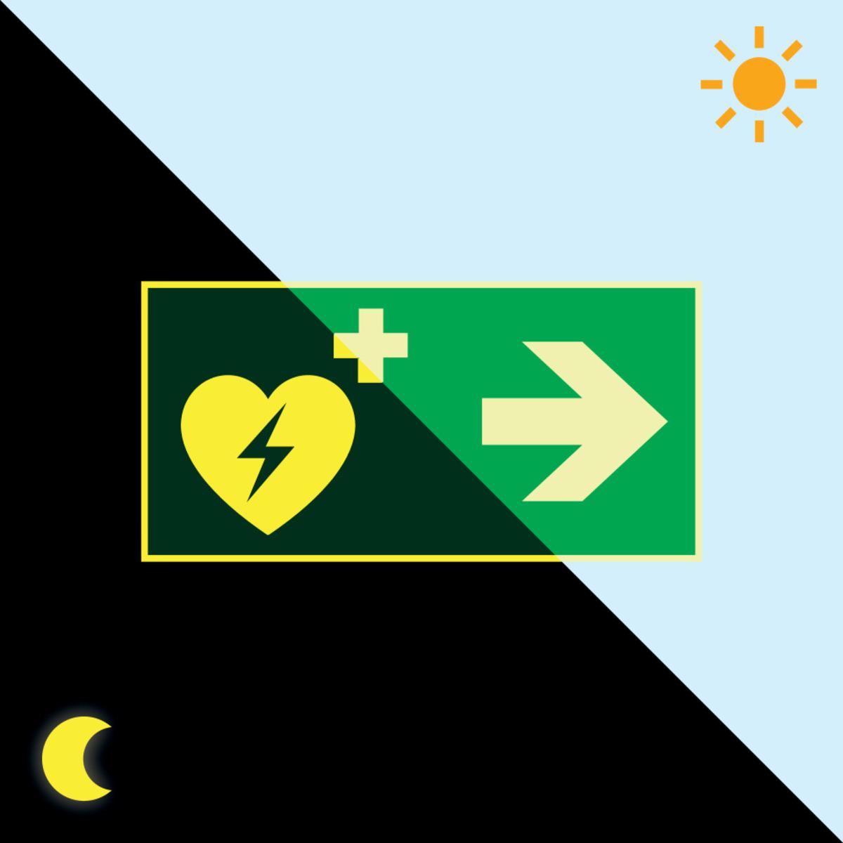 Mit dem langnachleuchtenden PERMALIGHT® power Rettungszeichen "Autom. ext. Defibrillator rechts" schützen Sie Leben und Gesundheit Ihrer Mitarbeiter und/oder Besucher, indem Sie Rettungswege und Notfalleinrichtungen eindeutig kennzeichnen.