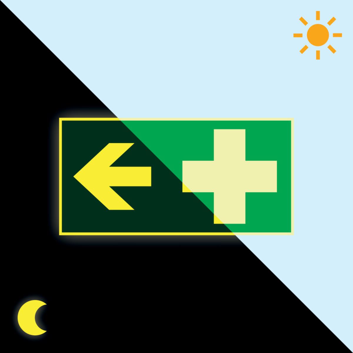 Mit dem langnachleuchtenden PERMALIGHT® power Rettungszeichen "Erste Hilfe links" schützen Sie Leben und Gesundheit Ihrer Mitarbeiter und/oder Besucher, indem Sie Rettungswege und Notfalleinrichtungen eindeutig kennzeichnen.
