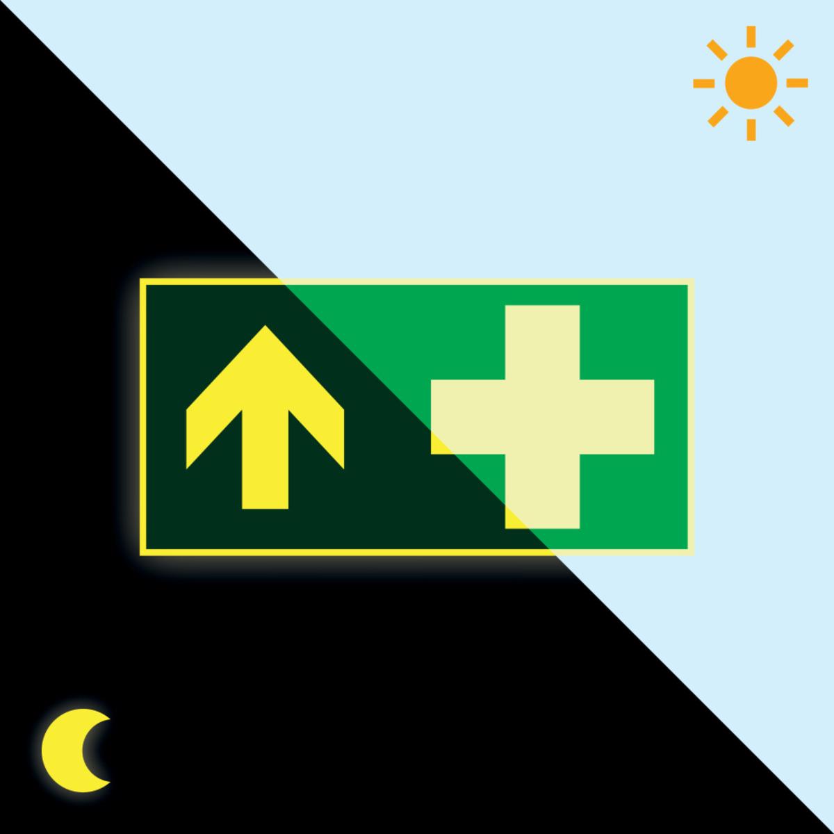 Mit dem langnachleuchtenden PERMALIGHT® power Rettungszeichen "Erste Hilfe Pfeil nach oben" schützen Sie Leben und Gesundheit Ihrer Mitarbeiter und/oder Besucher, indem Sie Rettungswege und Notfalleinrichtungen eindeutig kennzeichnen.