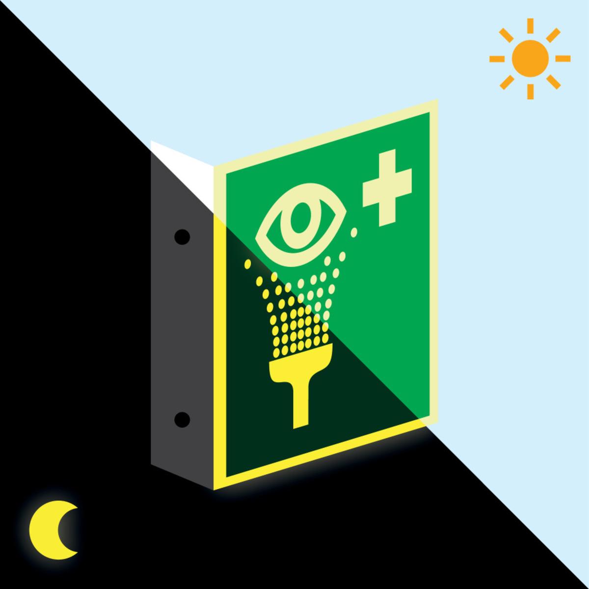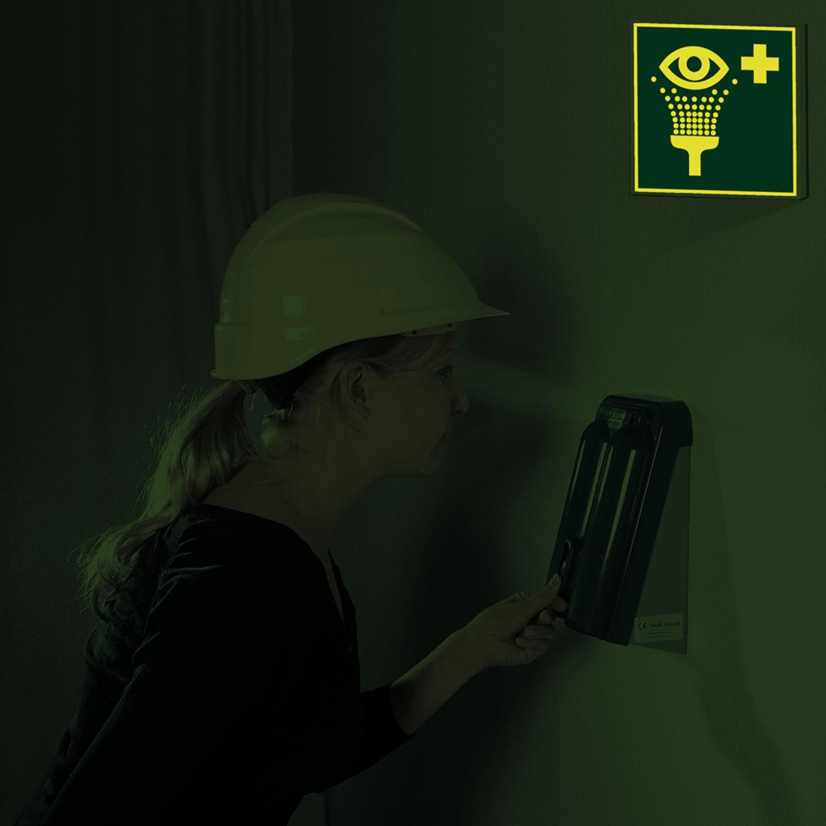 Mit dem langnachleuchtenden PERMALIGHT® power Rettungszeichen "Augenspülstation" schützen Sie Leben und Gesundheit Ihrer Mitarbeiter und/oder Besucher, indem Sie Rettungswege und Notfalleinrichtungen eindeutig kennzeichnen.