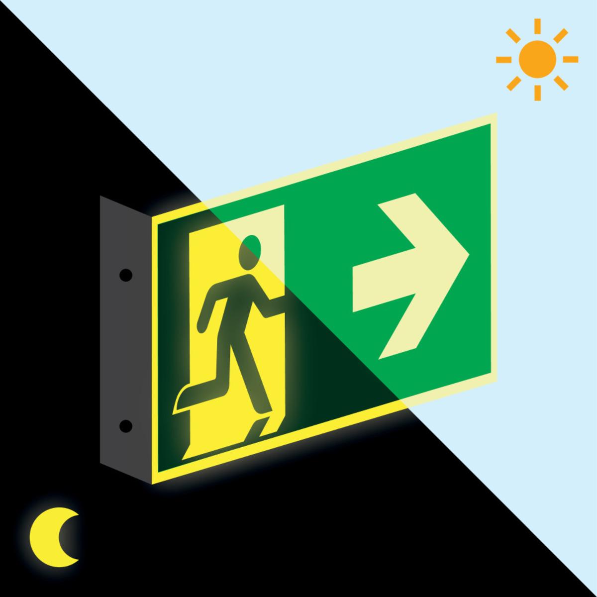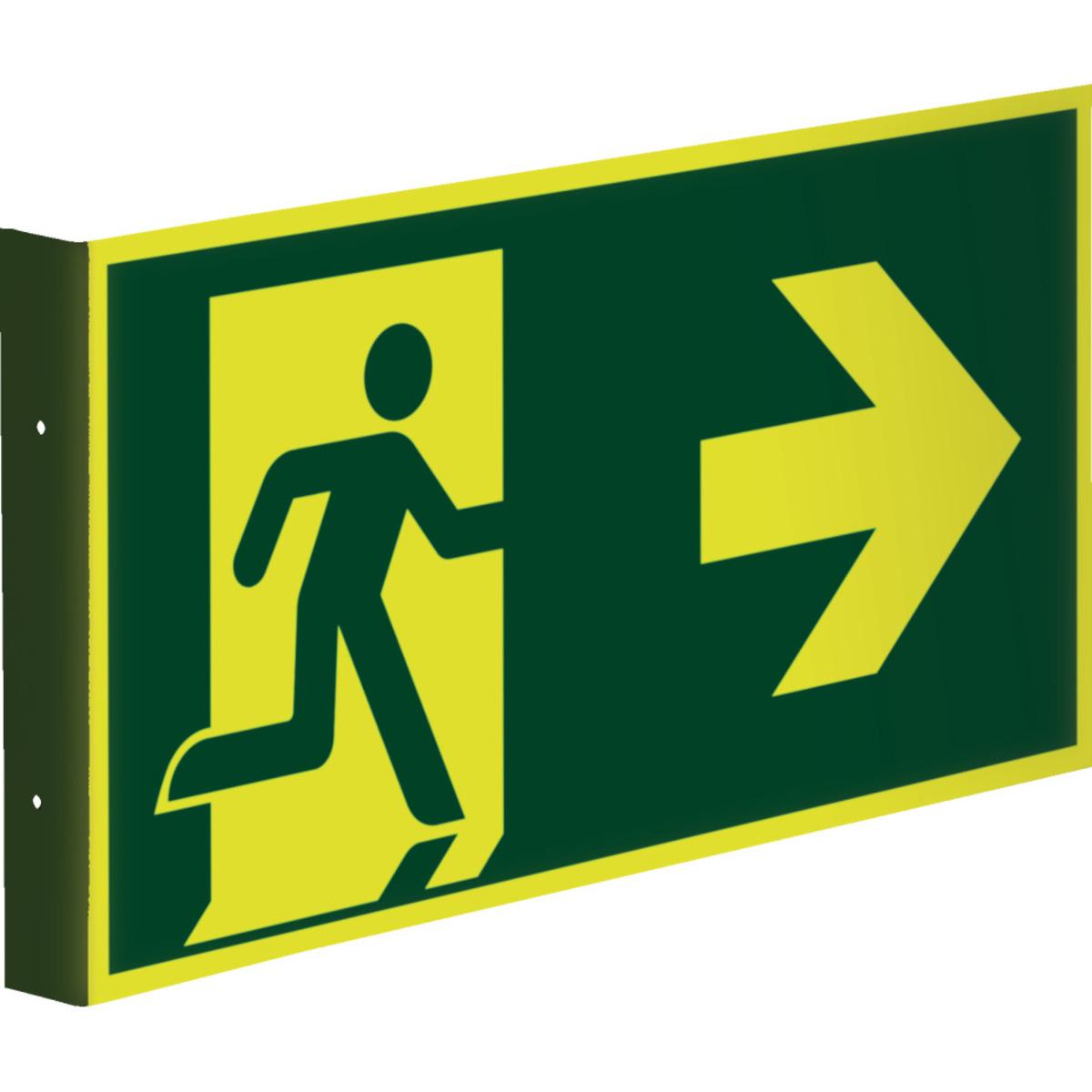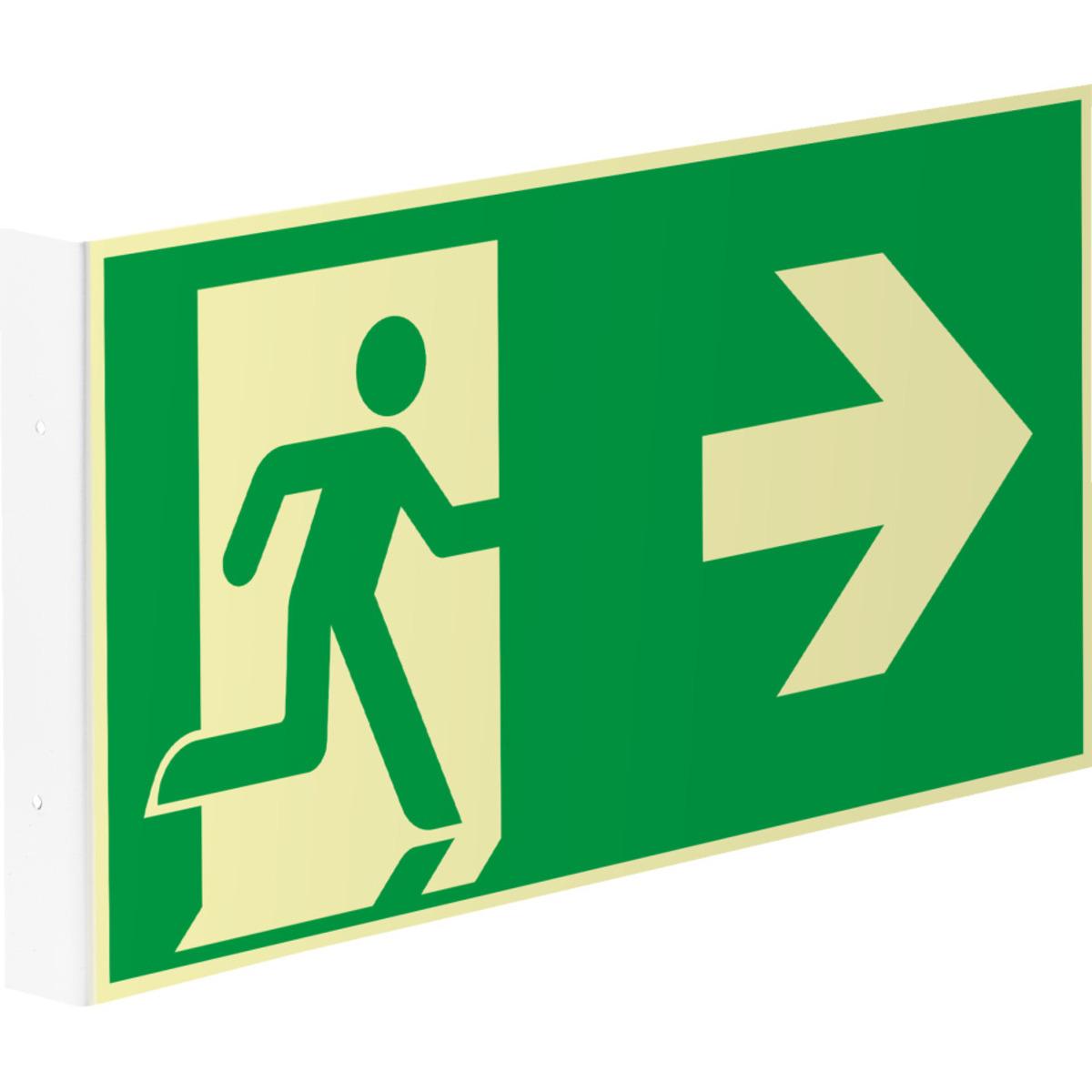 PERMALIGHT® power Rettungszeichen Fahnenschild Notausgang, Richtungspfeil rechts ASR/ISO Kunststoff