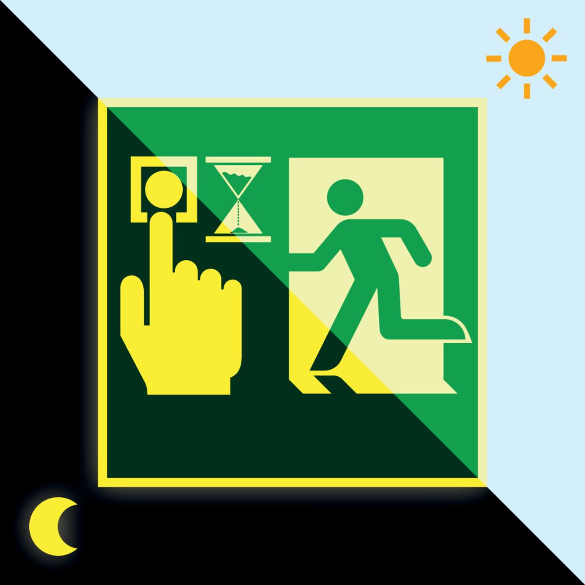 Langnachleuchtendes PERMALIGHT® Rettungszeichen zur Kennzeichnung von Fluchttüranlagen mit Zeitverzögerung