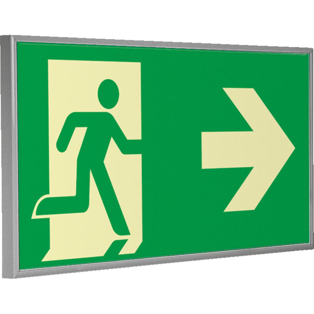PERMALIGHT® power Rettungszeichen im Rahmen Notausgang, Richtungspfeil rechts ASR/ISO Acrylglas, Aluminium, Kunststoff