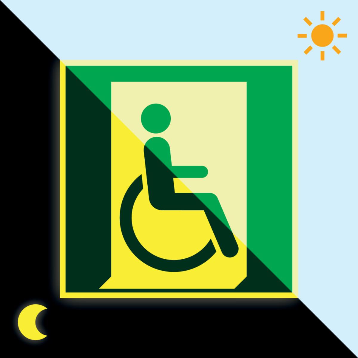 Langnachleuchtendes PERMALIGHT® Rettungszeichen zur Beschilderung von Notausgängen für nicht gehfähige oder gehbeeinträchtigte Personen