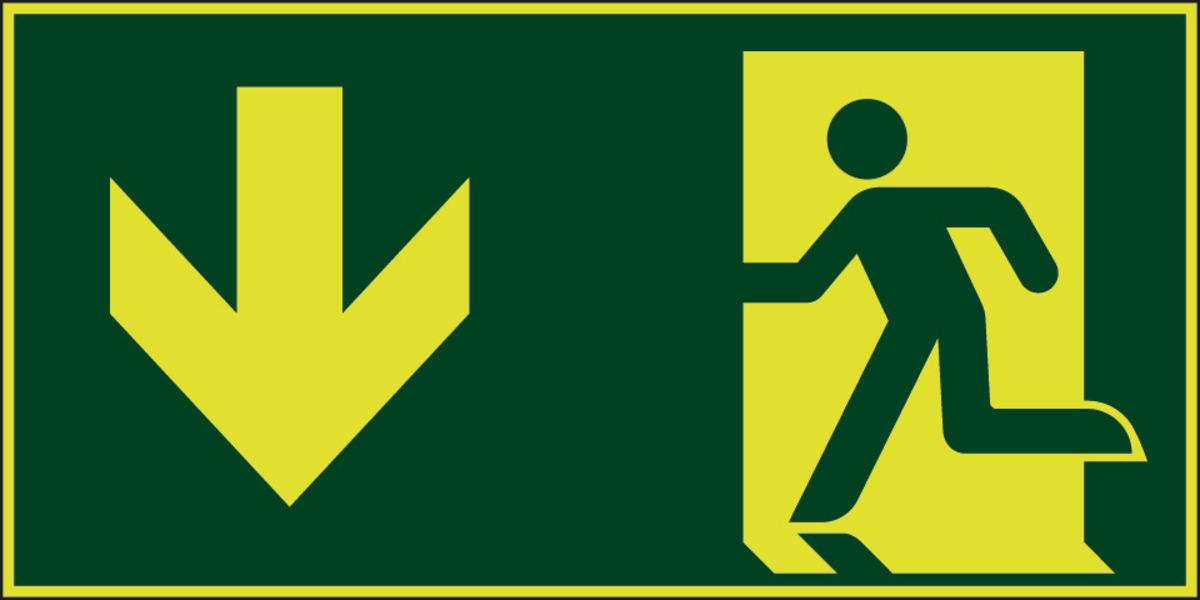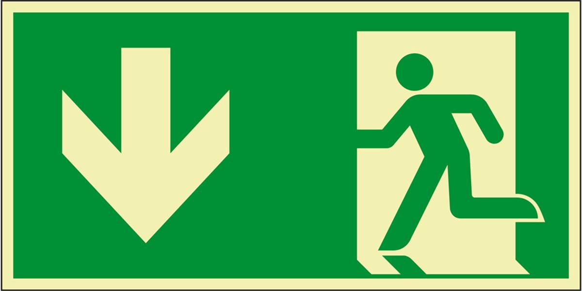 Extrem lang nachleuchtendes PERMALIGHT® Rettungszeichen mit Pfeil nach unten.
