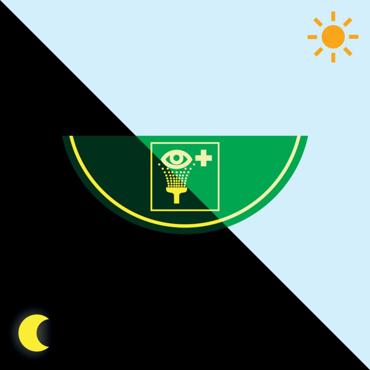 Halbkreisförmige PERMALIGHT® Anti-Rutsch-Sicherheitsbodenmarkierungen zur Kennzeichnung von Augenduschen