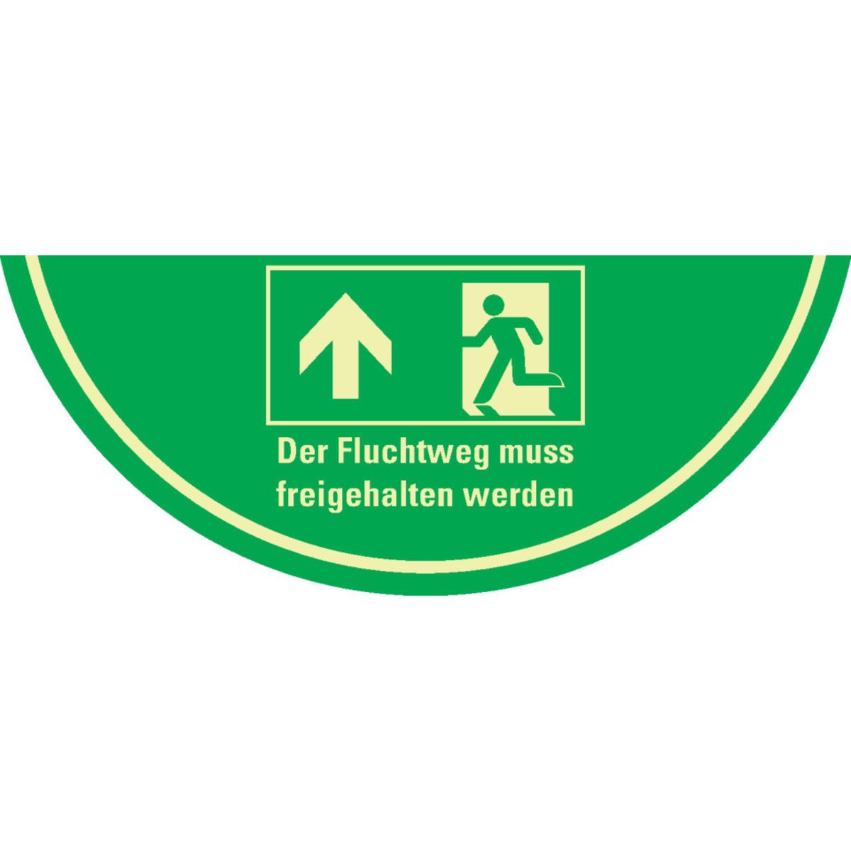 Die halbkreisförmigen PERMALIGHT® Anti-Rutsch-Sicherheitsbodenmarkierungen "Der Fluchtweg muss freigehalten werden" helfen, Gehwege im Türbereich von Hindernissen freizuhalten