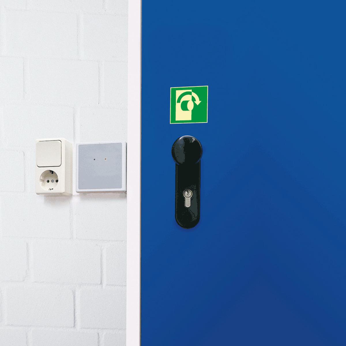 Auswahl: PERMALIGHT® power Türgriff-Hinweis Öffnung/Rechtsdrehung, ISO, Aluminium, 100x100mm