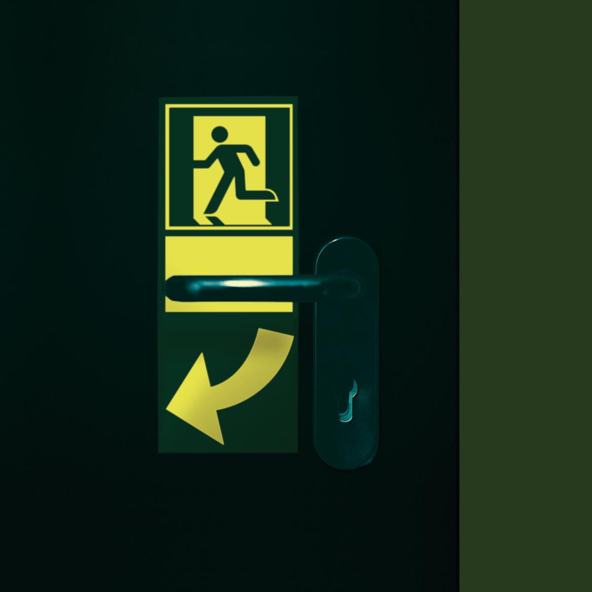Lang nachleuchtender PERMALIGHT® Notausgang-Hinweisaufkleber für den Türgriff.