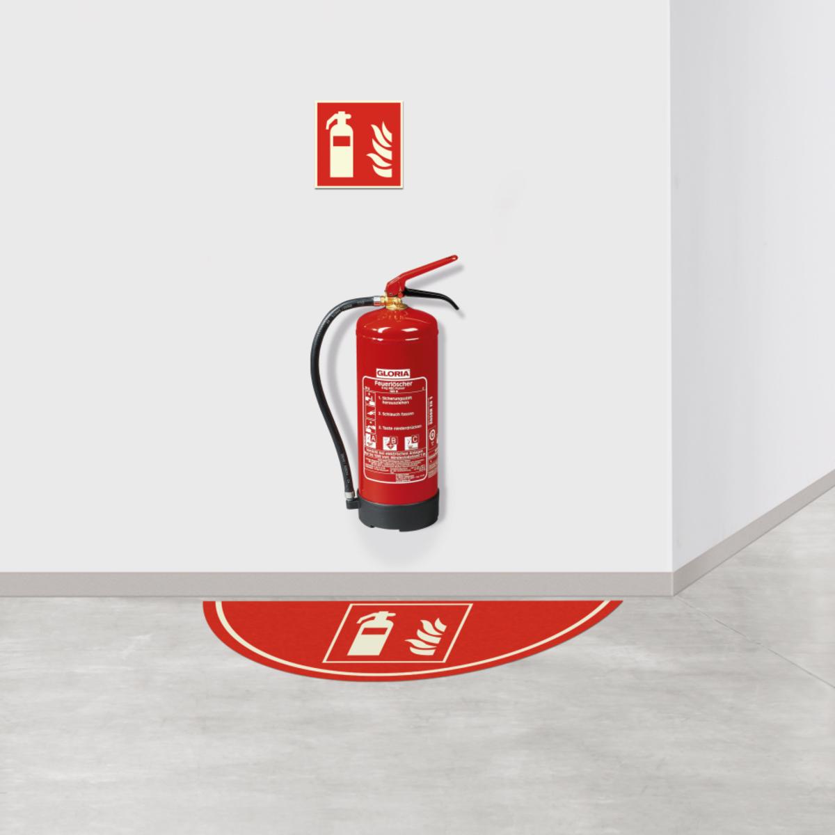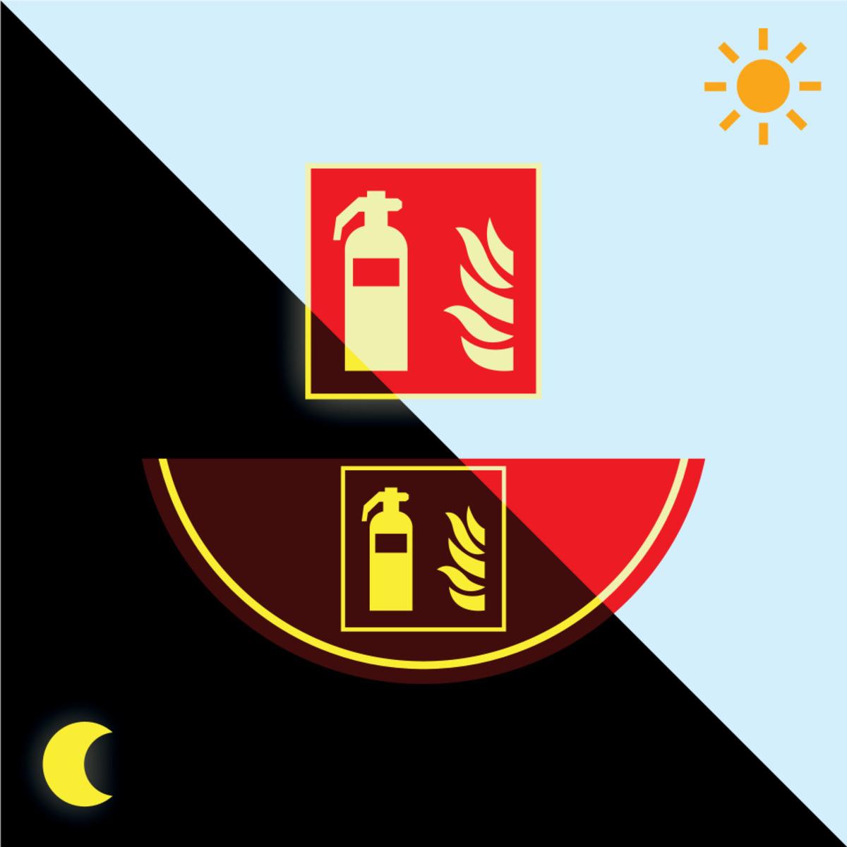 Lang nachleuchtendes PERMALIGHT® Brandschutz-Vorteilsset für die deutliche Kennzeichnung eines Feuerlöschers.