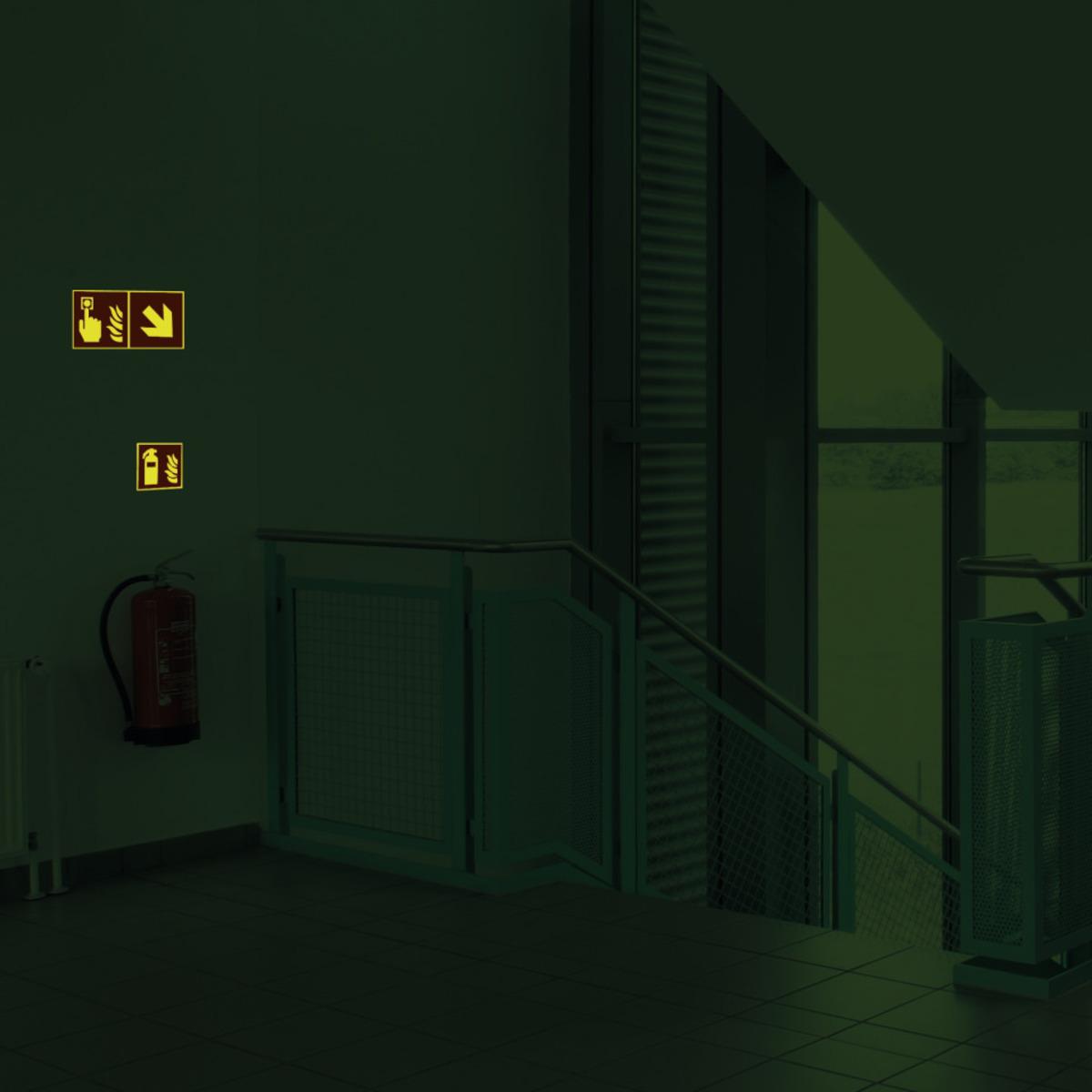 Langnachleuchtendes PERMALIGHT® Brandschutzzeichen "Richtungsangabe" zur Orientierung und Kennzeichnung der nächstgelegenen Brandschutzeinrichtung. Nur in Verbindung mit einem Brandschutzzeichen zu verwenden.
