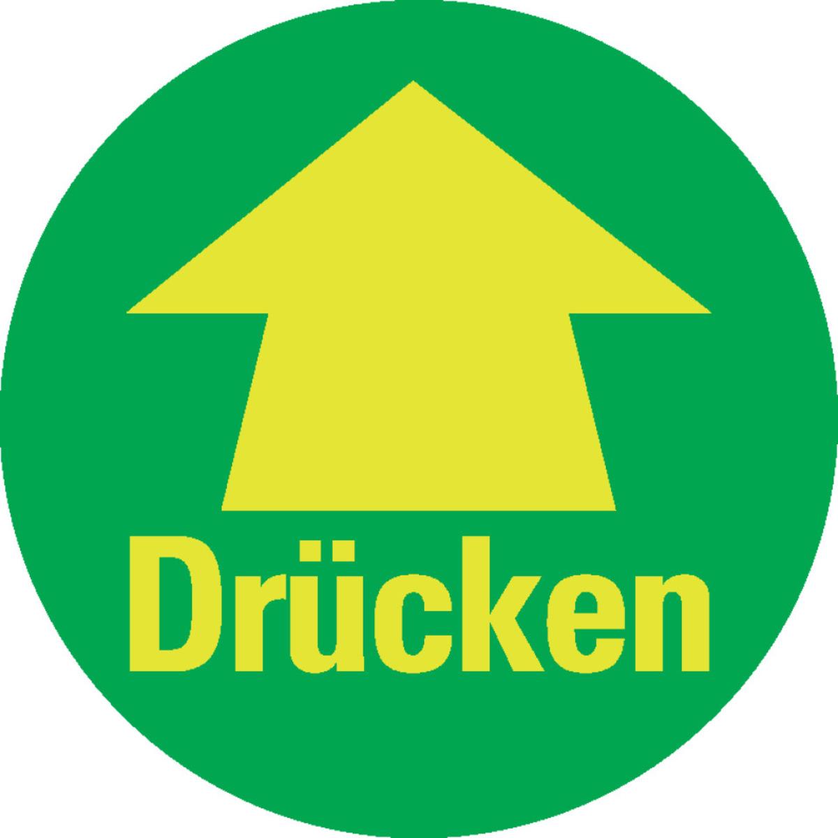 Auswahl: PERMALIGHT® power Türhinweis Drücken mit Pfeil, grün, Folie, fluoreszierend, Ø 100mm
