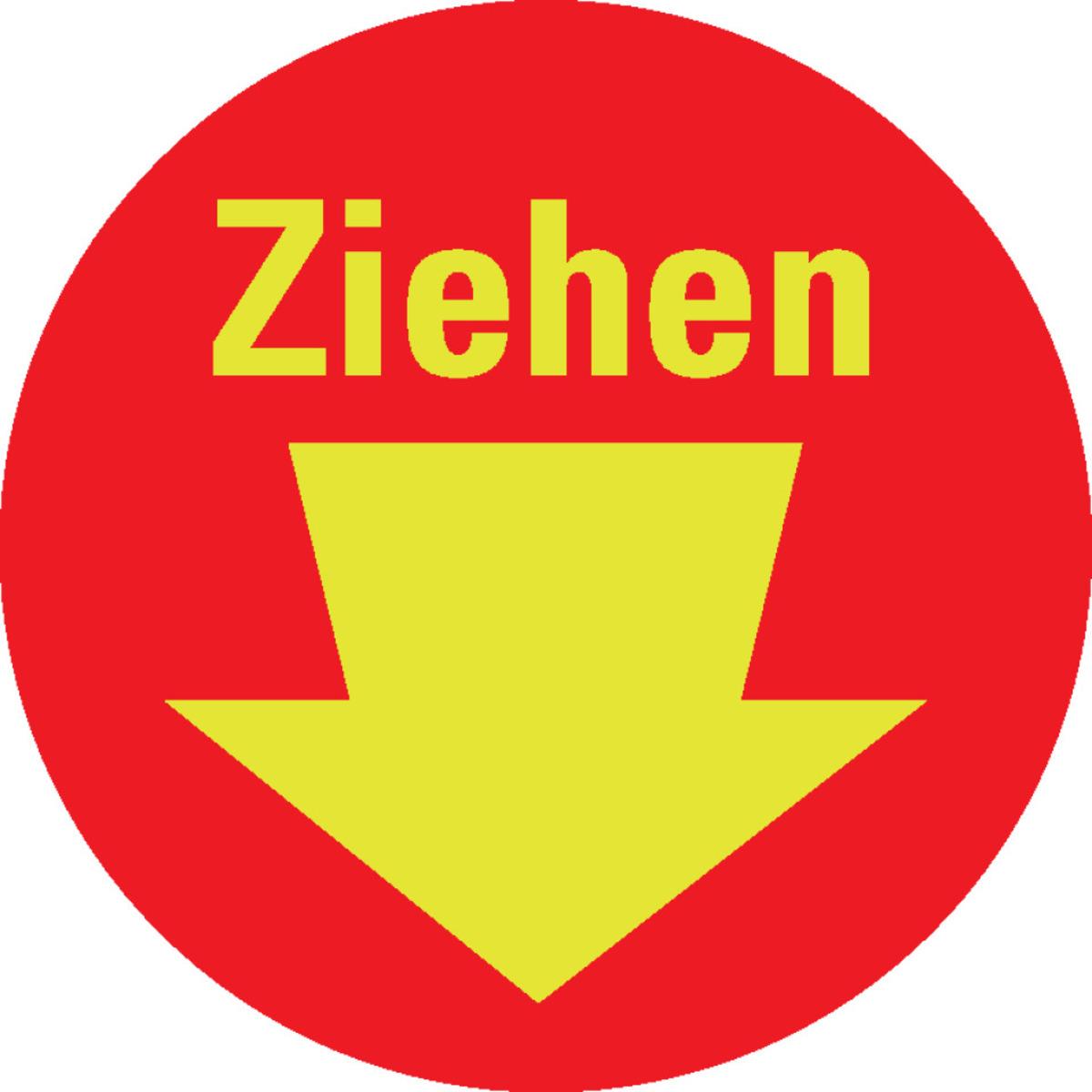 Auswahl: PERMALIGHT® power Türhinweis Ziehen mit Pfeil, rot, Folie, fluoreszierend, Ø 100mm