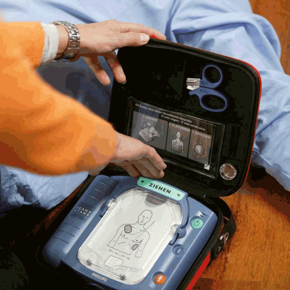 Auswahl: Philips Defibrillator HeartStart HS1, einfach und sicher anwendbar, Tasche, Safebox