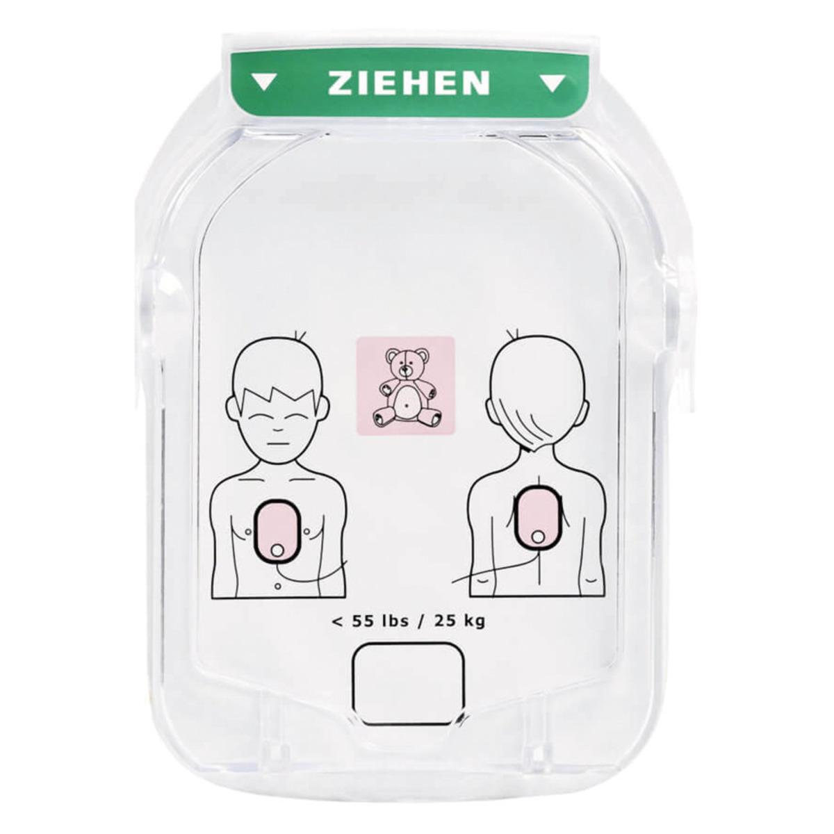 HeartStart AED Defi-Elektroden speziell für Kinder bis 25 kg geeignet, die Philips SMART Pad Elektroden werden an Brust und Rücken des Patienten aufgeklebt und sind sofort einsatzbereit