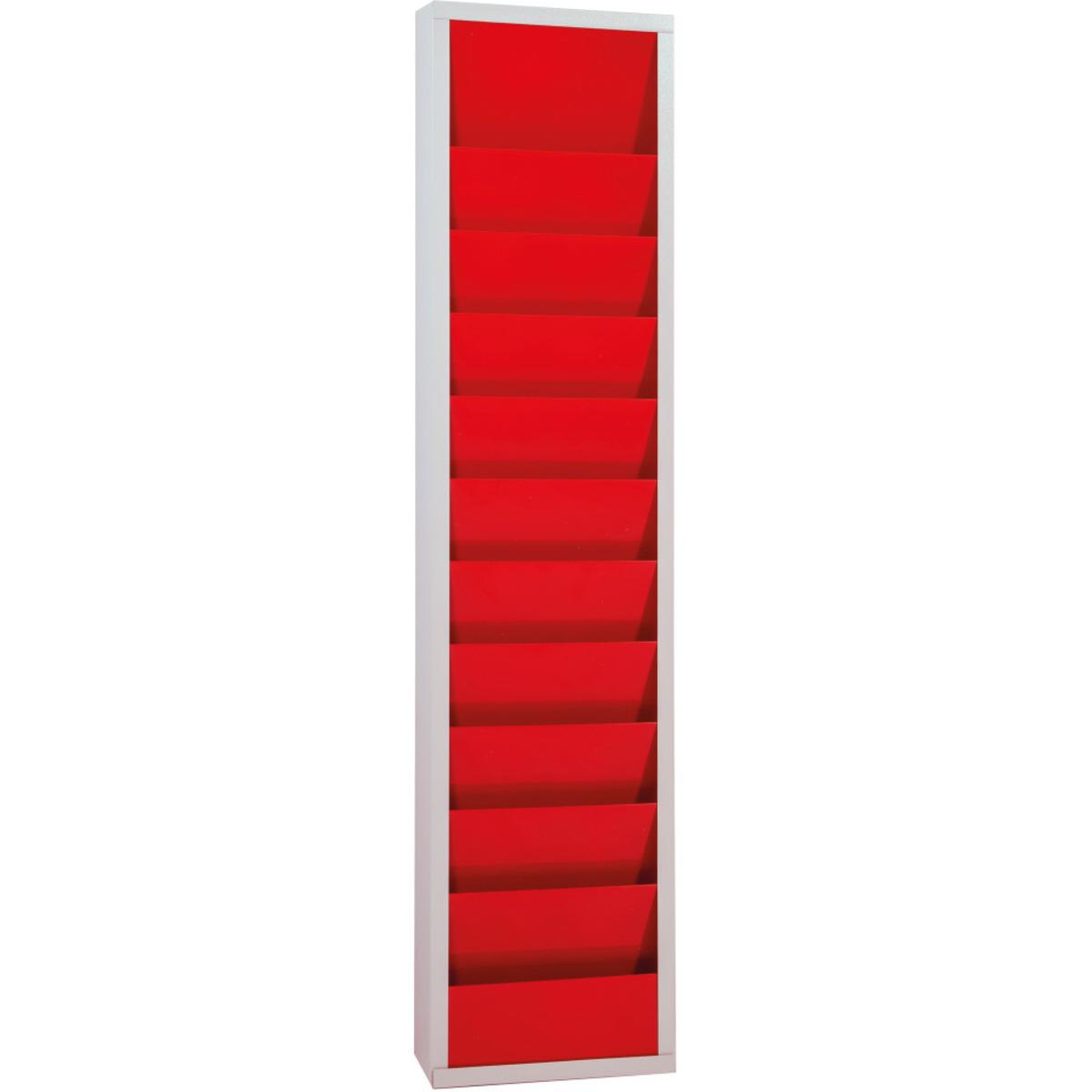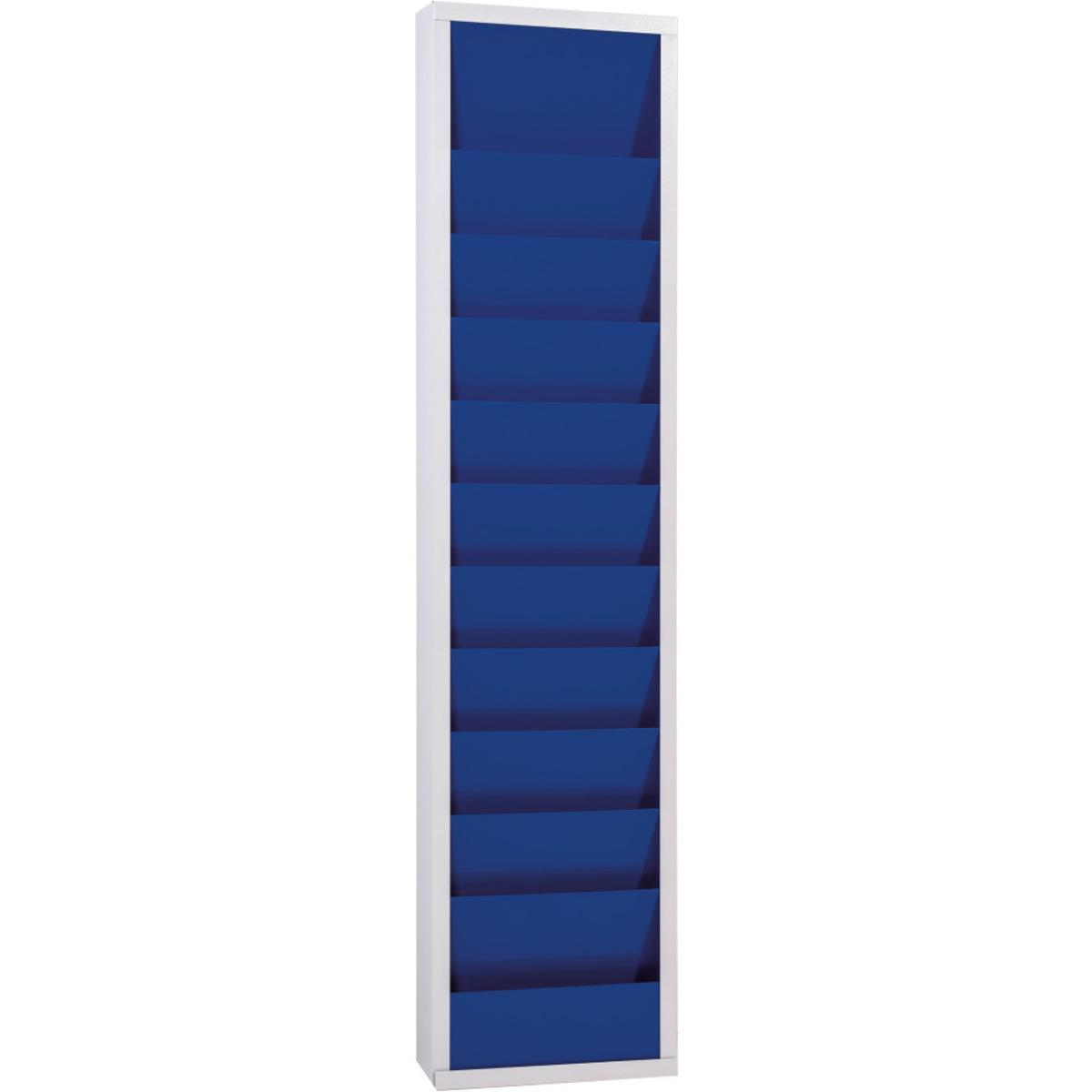 Einreihige Planungstafel mit 10 belegbaren Schienen, geeignet für DIN A4 Auftragstaschen, lieferbar in drei verschiedenen Farben, Tafeln beliebig aneinander ansetzbar