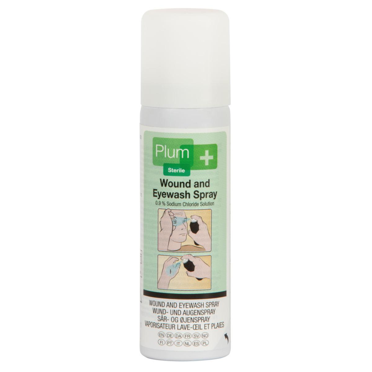 Plum Wund- und Augenspray zum Reinigen von Wunden oder sanftem Spülen der Augen, einfach und schmerzfrei anwendbar, minimiert das Risiko weiterer Infektionen oder Schäden durch Schnitte und Kratzer auf der Haut oder Staub und Schmutz in den Augen.