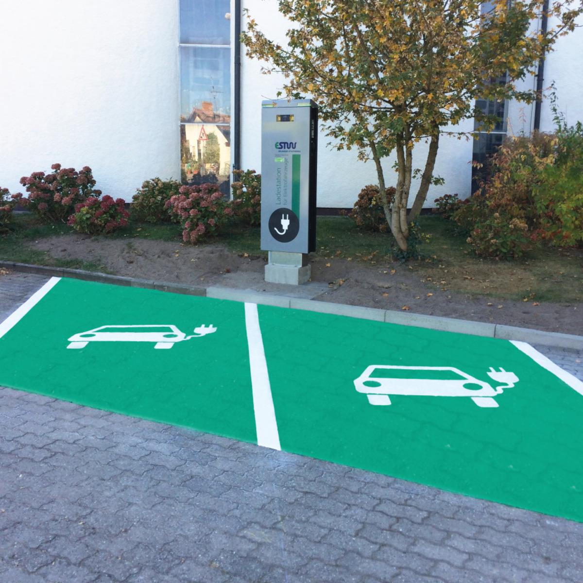 PREMARK® Bodenzeichen "Elektrofahrzeug" zum Aufbrennen auf festem Untergrund, schon nach kurzer Zeit befahr- oder begehbar, bis zu 8 mal haltbarer als aufgesprühte Bodenmarkierungen, Glasperlen erhöhen die Anfangsreflexion und den Warneffekt, rutschhemmende Oberfläche (R12), Selbstreinigungseffekt im Außenbereich, mit ausführlicher Verlegeanleitung