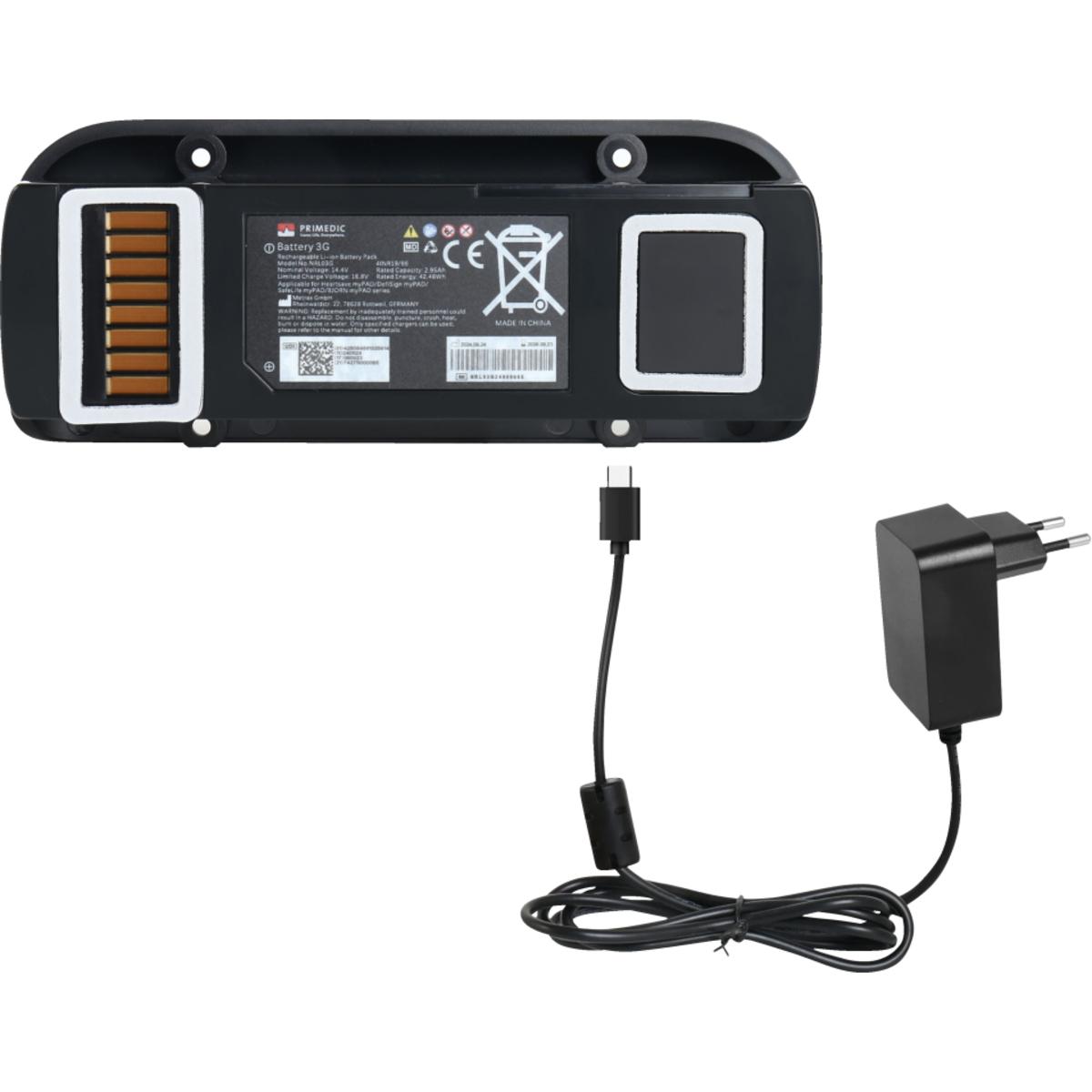 Auswahl: Akku für PRIMEDIC HeartSave myPAD, wiederaufladbar, Ladeadapter, Gebrauchsanleitung