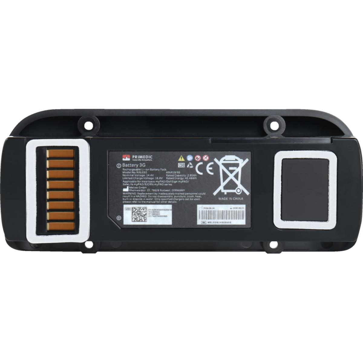 Wiederaufladbarer Akku für myPAD Defibrillatoren, hält zahlreiche Ladezyklen bei gleichbleibender Leistung. Bietet auch bei niedrigem Ladestand zuverlässige Leistung von mindestens 6 Schocks mit 200 J, 12 Jahre haltbar.