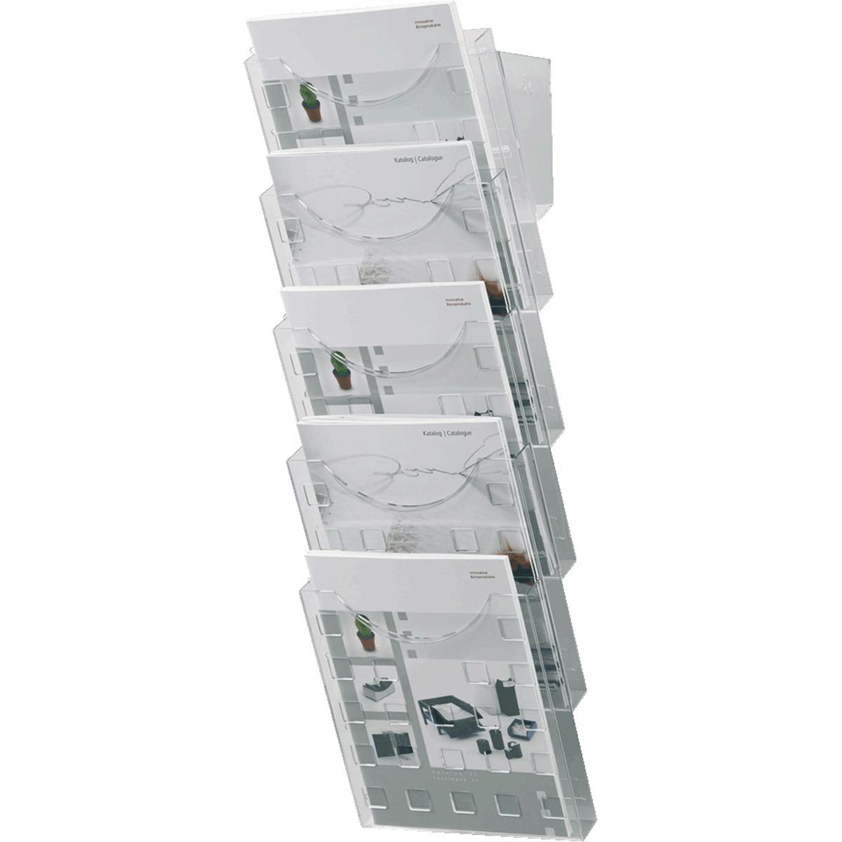 Auswahl: Prospekthalter f. Wand, 5 Fächer DIN A4 hoch, glasklar, Polystyrol, 241x578mm