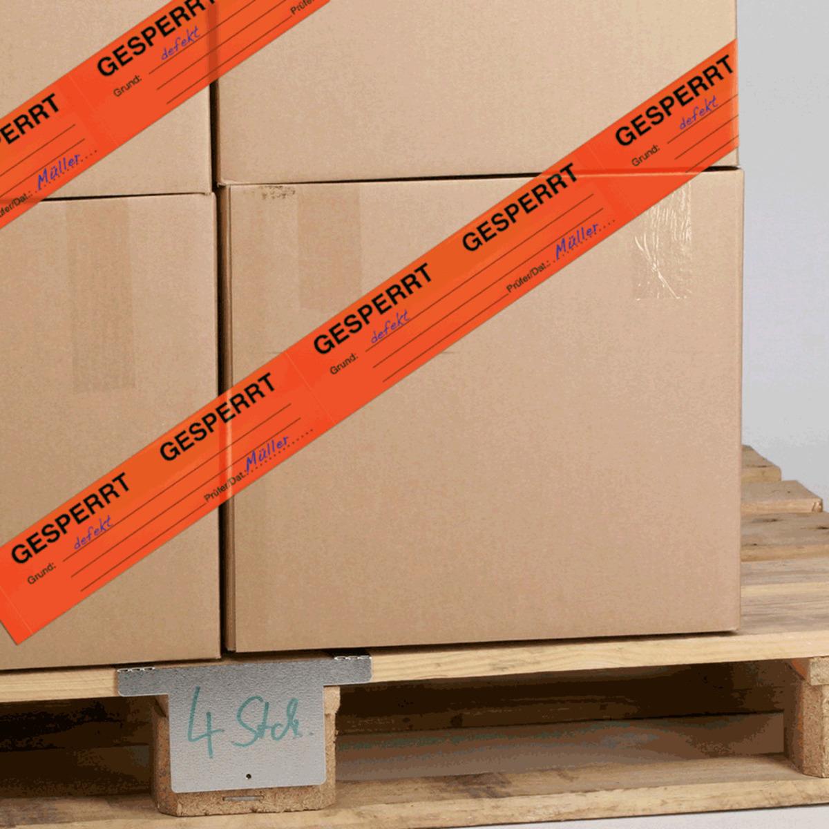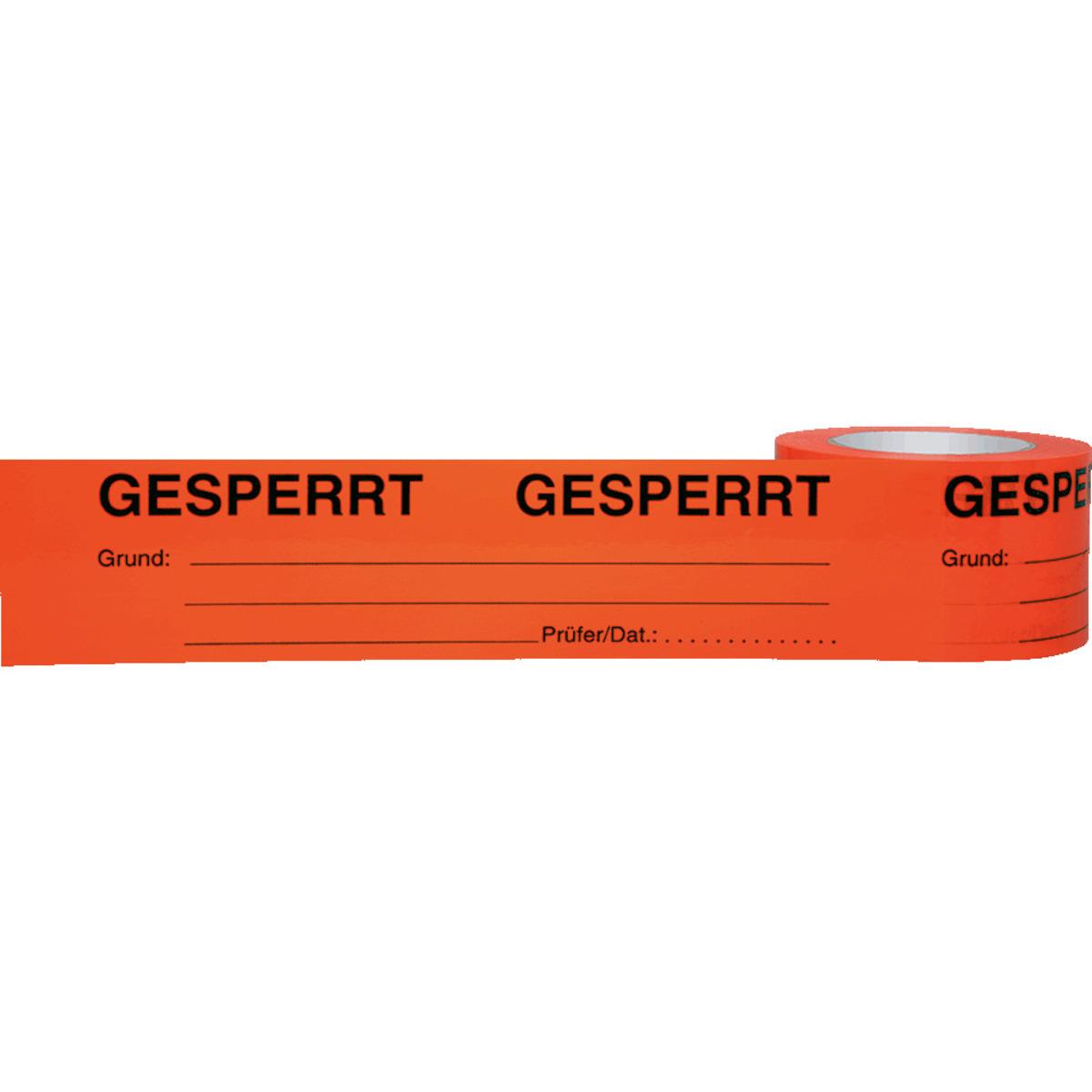 Auswahl: Qualitätsband GESPERRT, orange/schwarz, Polypropylen, selbstkl., 46my, 75mm, 66m/Rolle