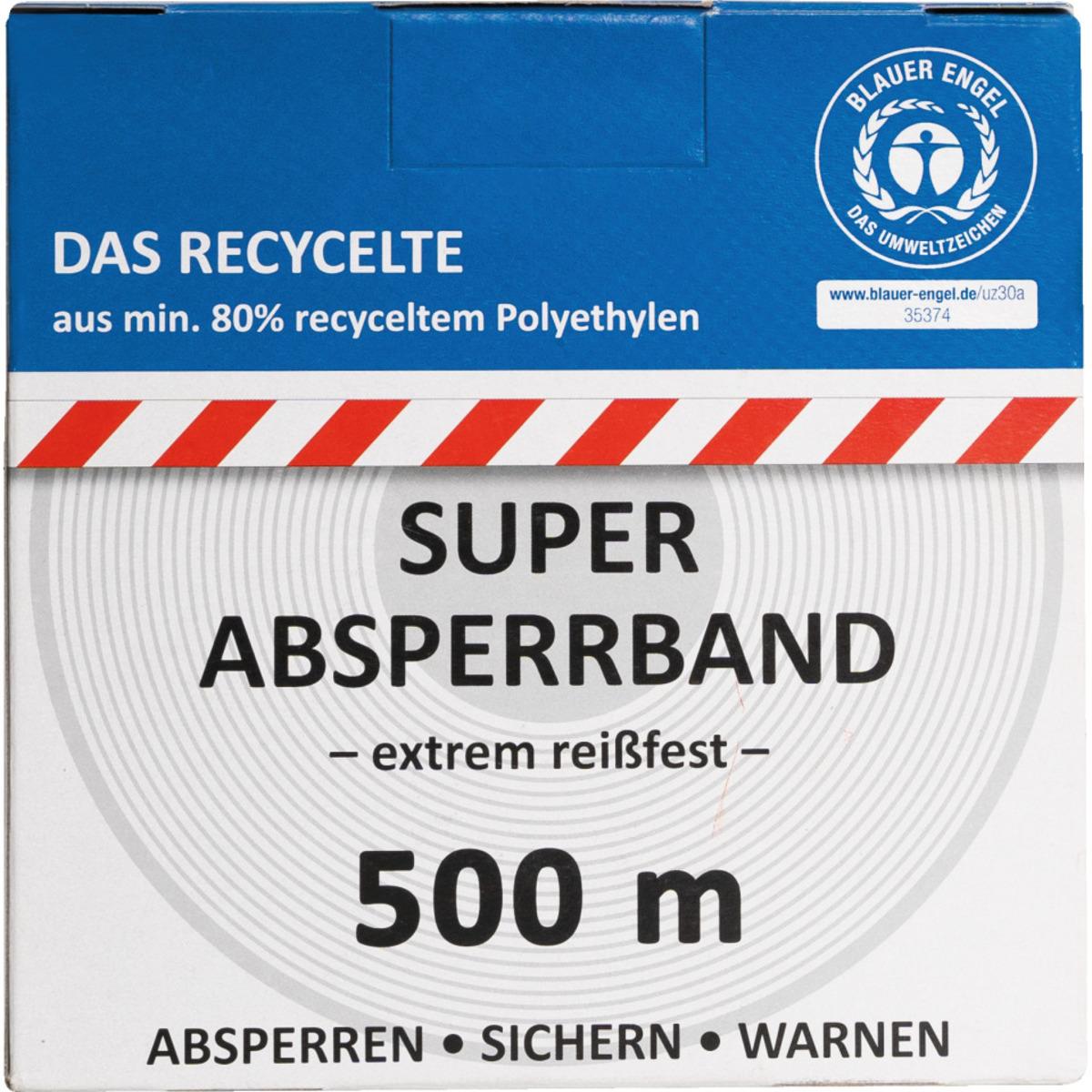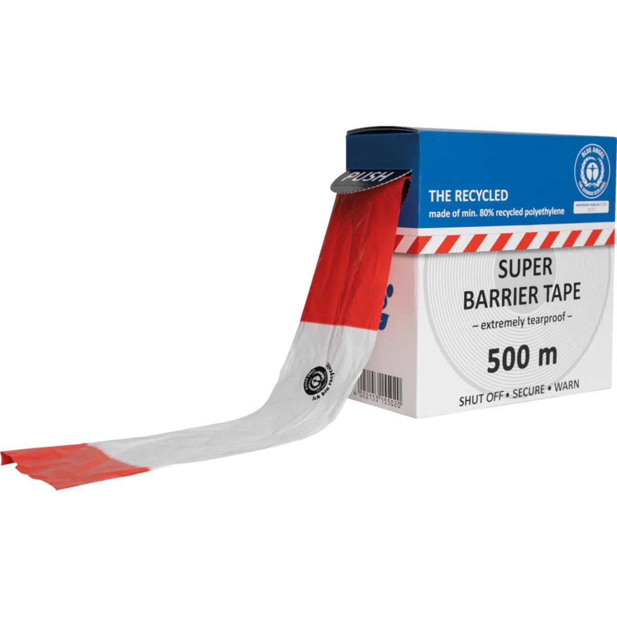 Auswahl: Recycling Absperrband Super, rot/weiß geblockt, Polyethylen, 80mm, 500m/Rolle