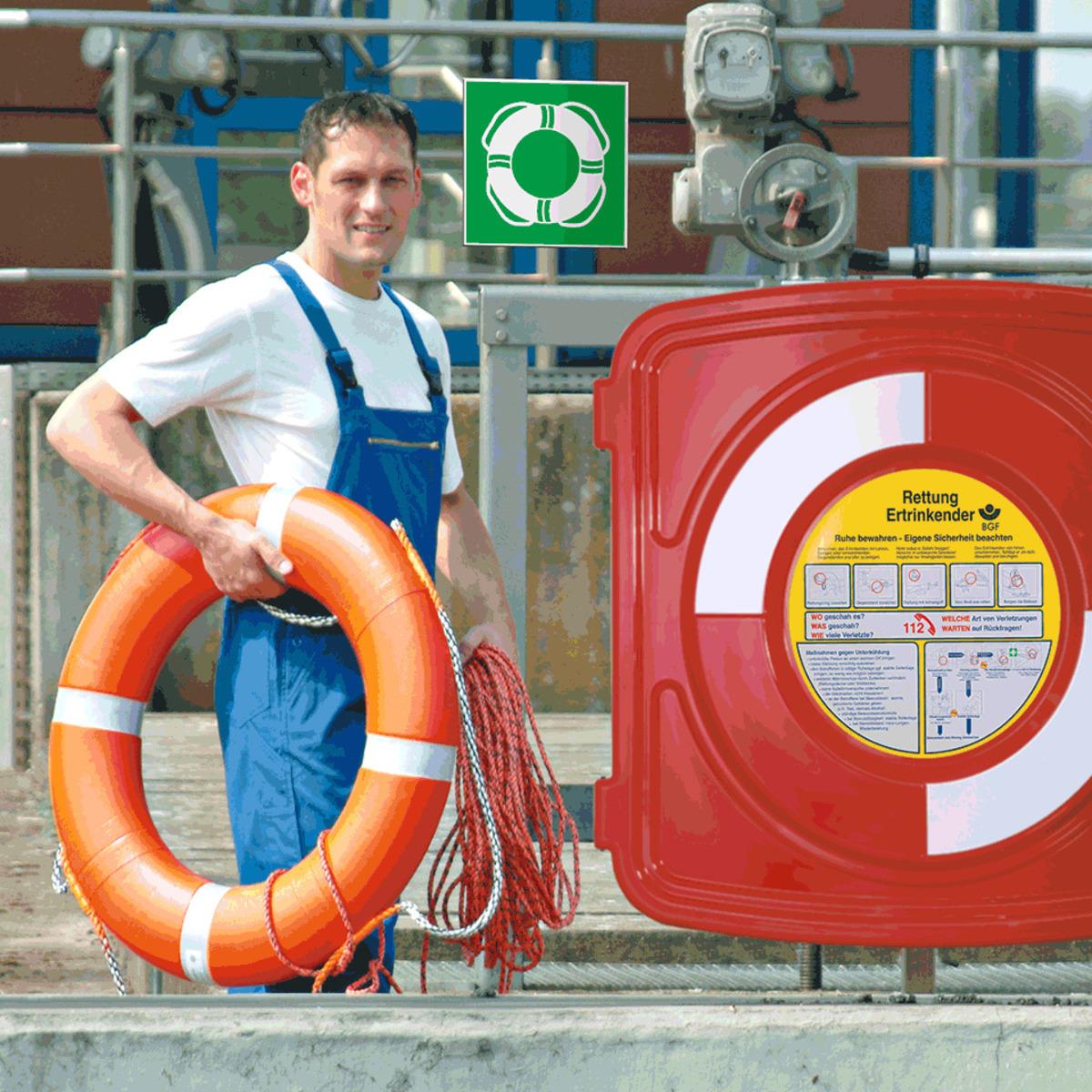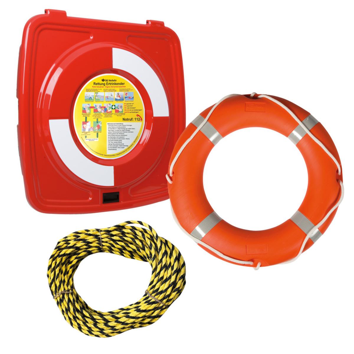 Auswahl: Rettungsring-Wandgehäuse-Set, Kasten, Ring, Rettungsleine, 3 Teile/VE
