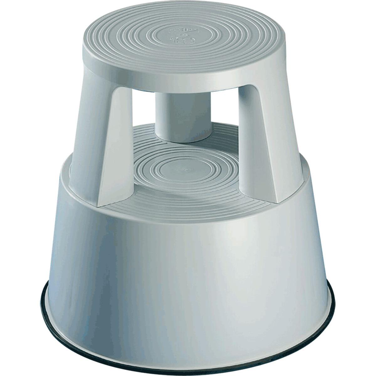 Rollhocker mit auf Stahlfedern gelagerten Rollen, standsicher ab 5 kg Belastung, Trittstufen mit rutschfestem Gummibelag, sehr robust, Standring aus Gummi