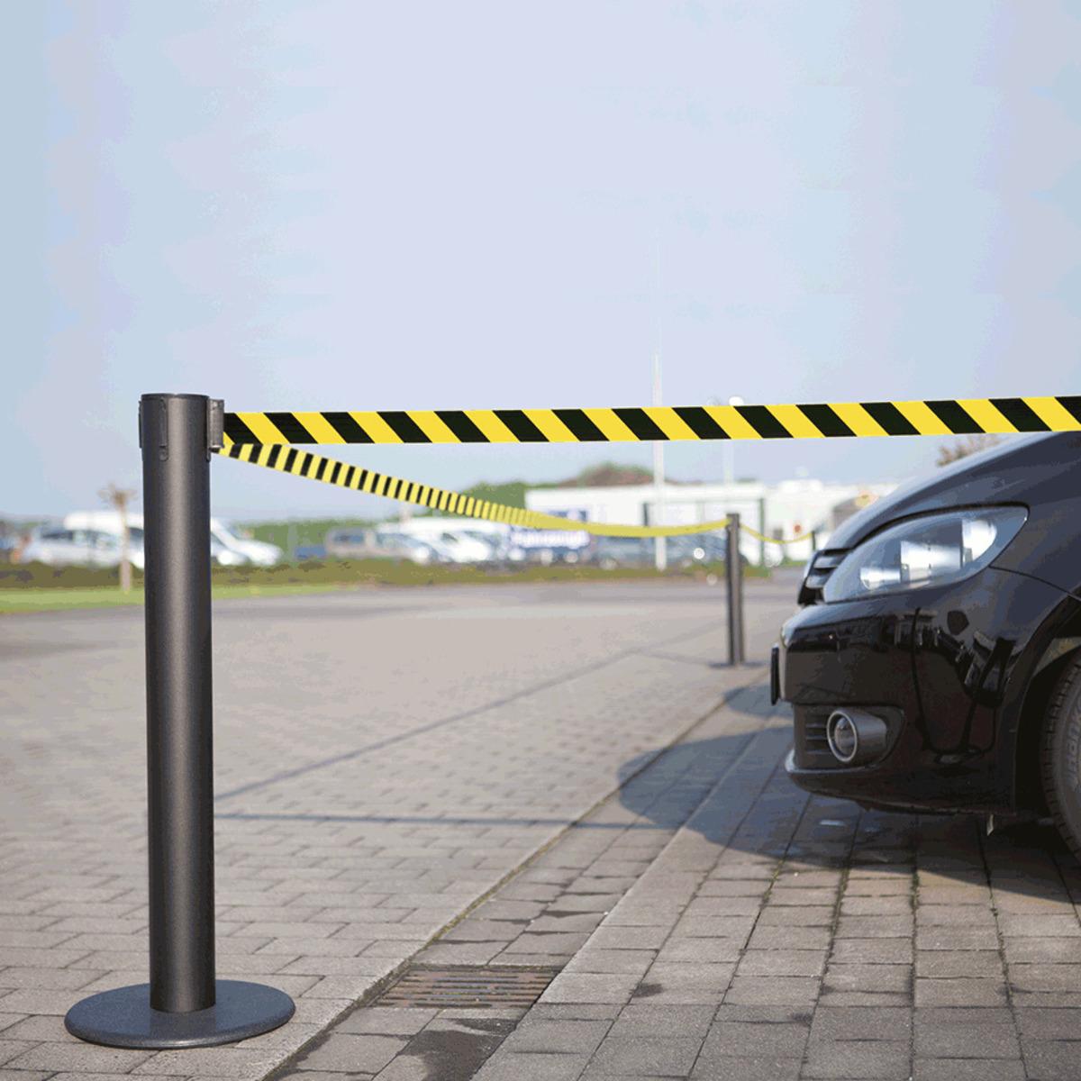 Auswahl: RS-GUIDESYSTEMS Gurtpfosten Indoor, schwarz, Stahl, Gurt ge/s schraffiert, 50mm, 9m