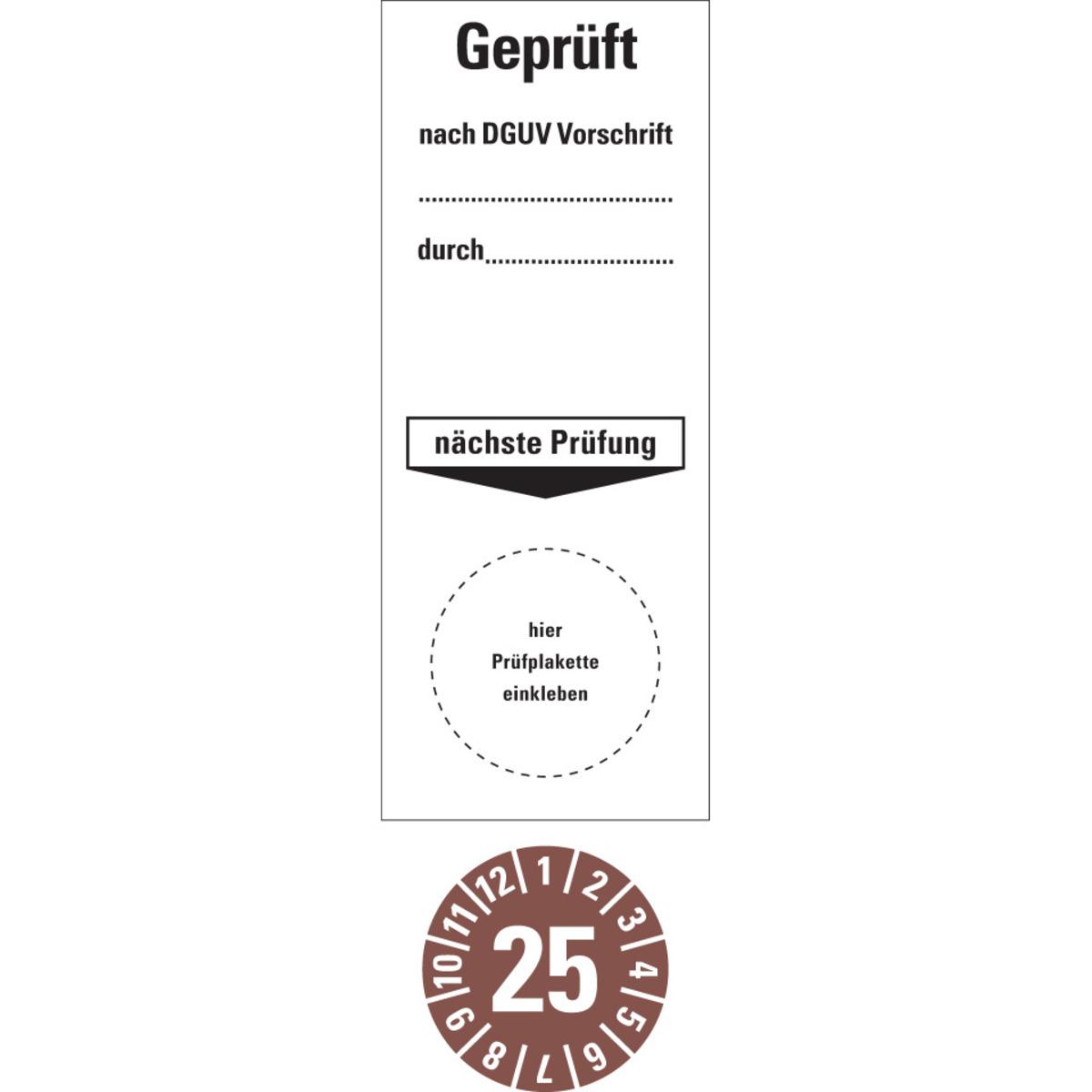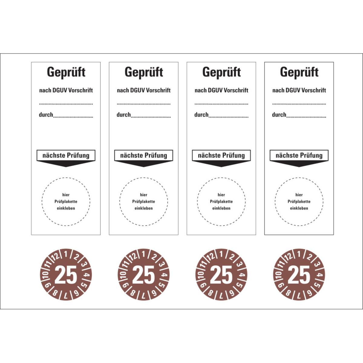 Auswahl: Sammelbogen Grundetikett Geprüft nach DGUV Vorschrift durch... NP 25, braun