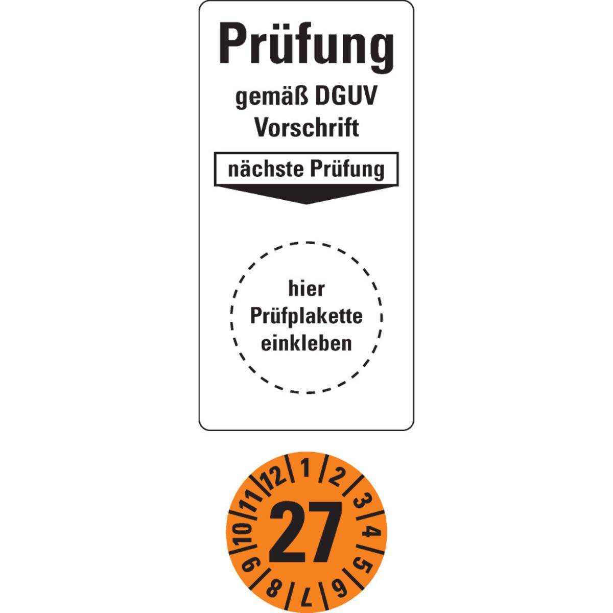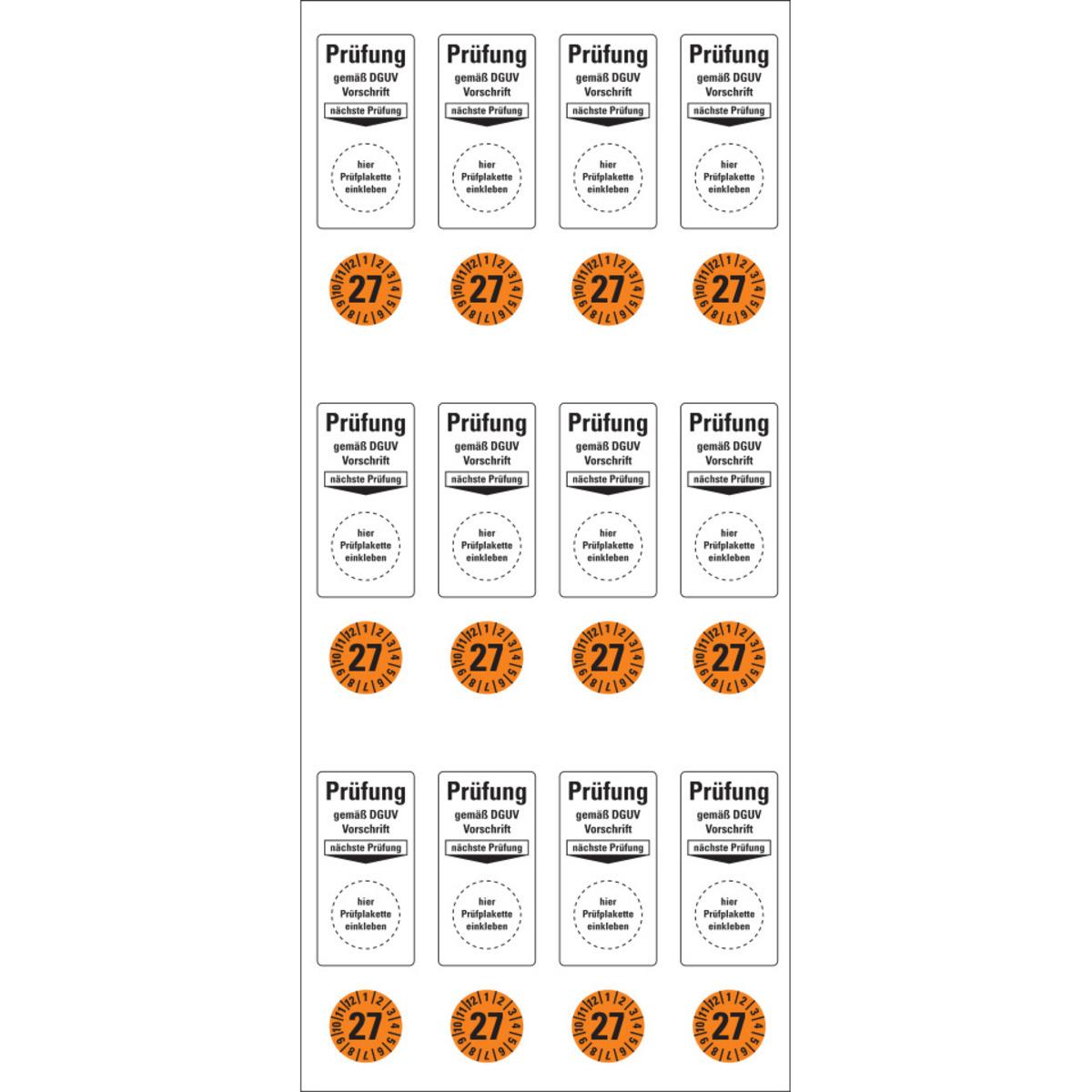 Auswahl: Sammelbogen Grundetikett Prüfung DGUV Vorschrift, NP 27, orange, Ø 15mm