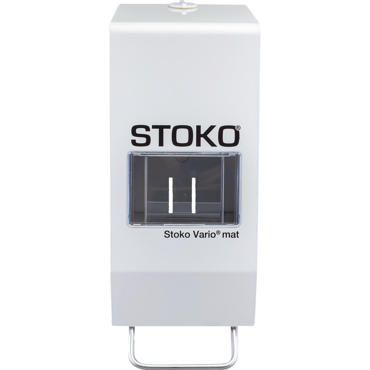 Robuster und universeller Spender Stoko Vario® mat von SC Johnson für 1000-ml- und 2000-ml-Softflaschen, für alle Hand- und Hautreinigungsprodukte, Handdesinfektionsmittel, Hautschutz- sowie Hautpflegeprodukte geeignet, einfache Handhabung und Befüllung, verriegelbar, mit Bedienungshebel für Ellenbogenbetätigung
