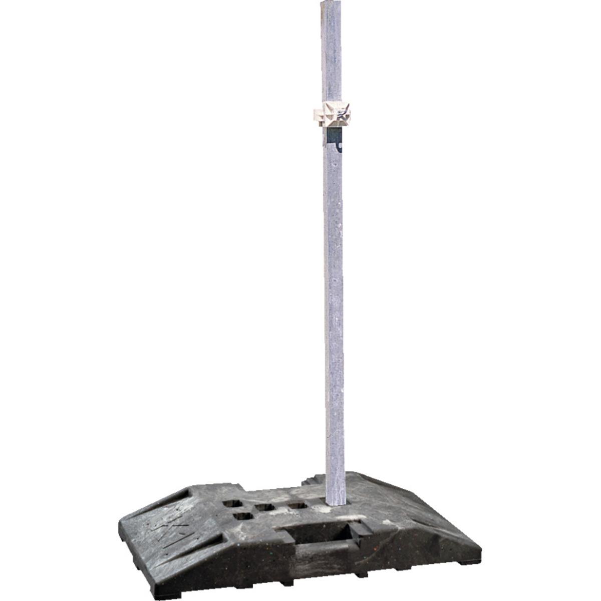 Dieses Schaftrohr mit verdrehsicheren Laschen kann z. B. für Bauabsperrungen eingesetzt werden. Es ist keine Verschraubung nötig, das Rohr wird einfach in eine Fußplatte gesteckt.