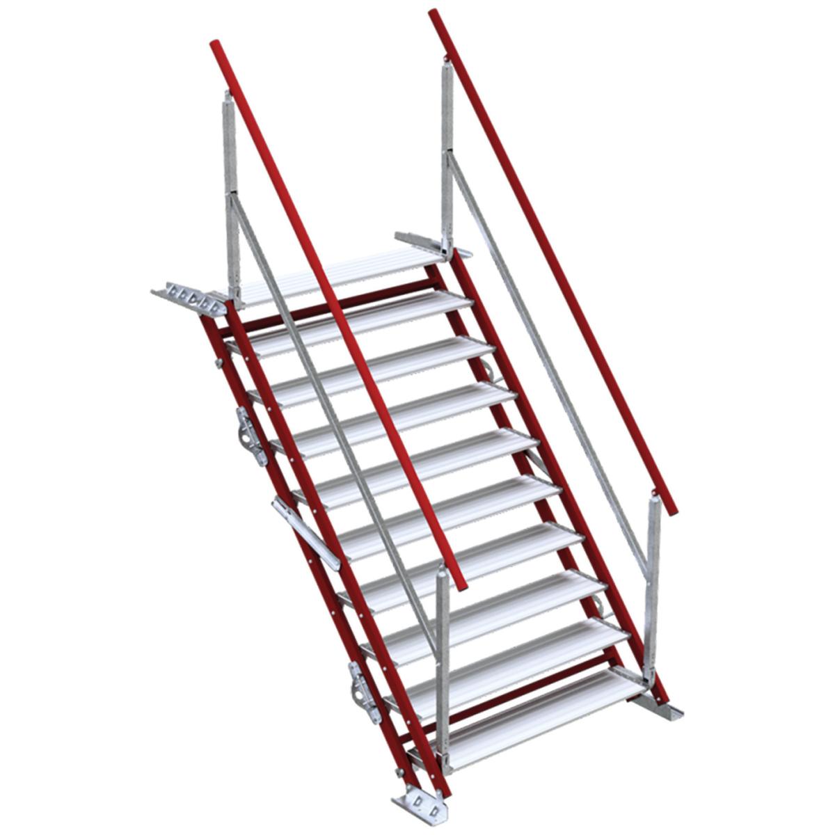 Auswahl: Schake Bautreppe, m.Geländer, rot, Aluminium/Stahl, 10 Stufen, 140kg, 2845x1525x205mm