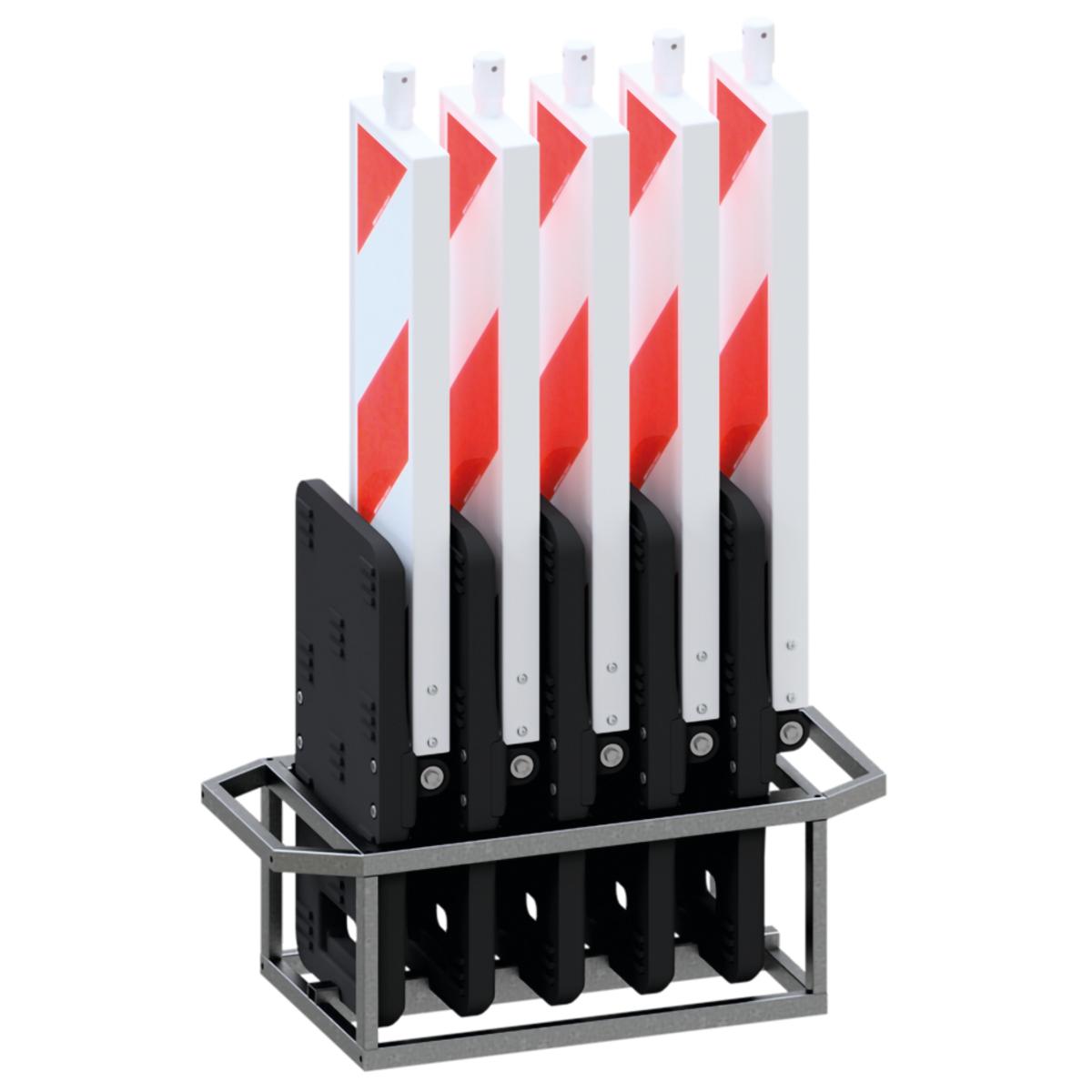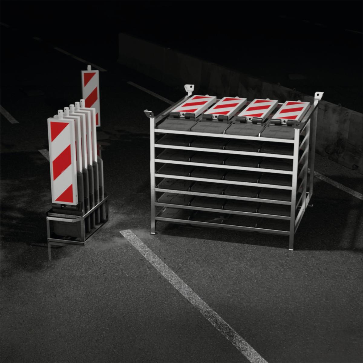 Set für den Einsatz bei Arbeiten im Straßenbau und zum universellen und schnellen Absichern von Baustellen. Transportbox mit zwei stabilen Tragegriffen, robustem Klappmechanismus mit zwei Gelenken. Die Baken sind doppelwandig und dadurch besonders stabil. Ergonomische Tragegriffe an den Baken und Fußplatten sorgen für einen einfachen Transport.