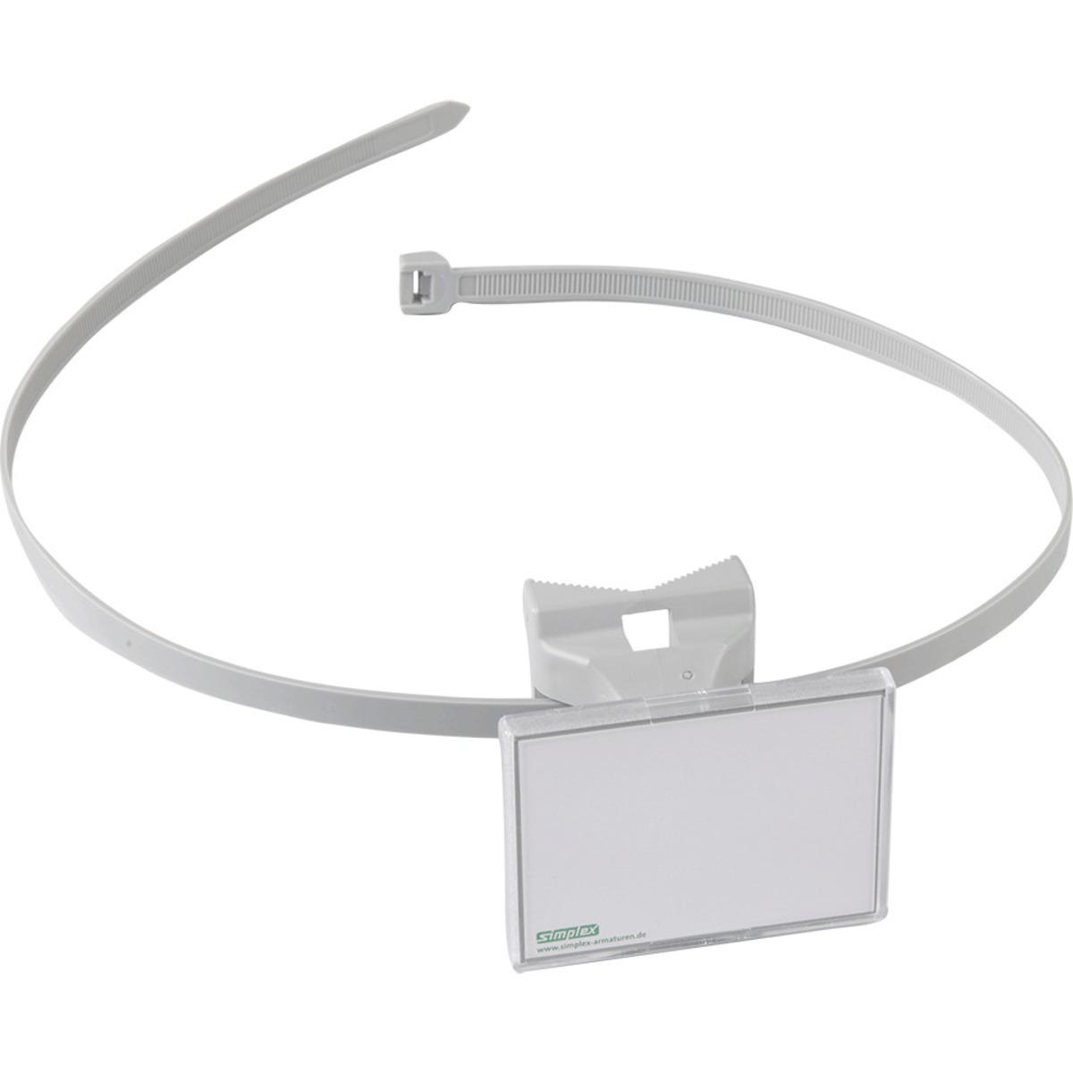 Schilderhalter für Etiketten mit Schnellschlussverband zur schnellen Kennzeichnung von Rohrleitungen.