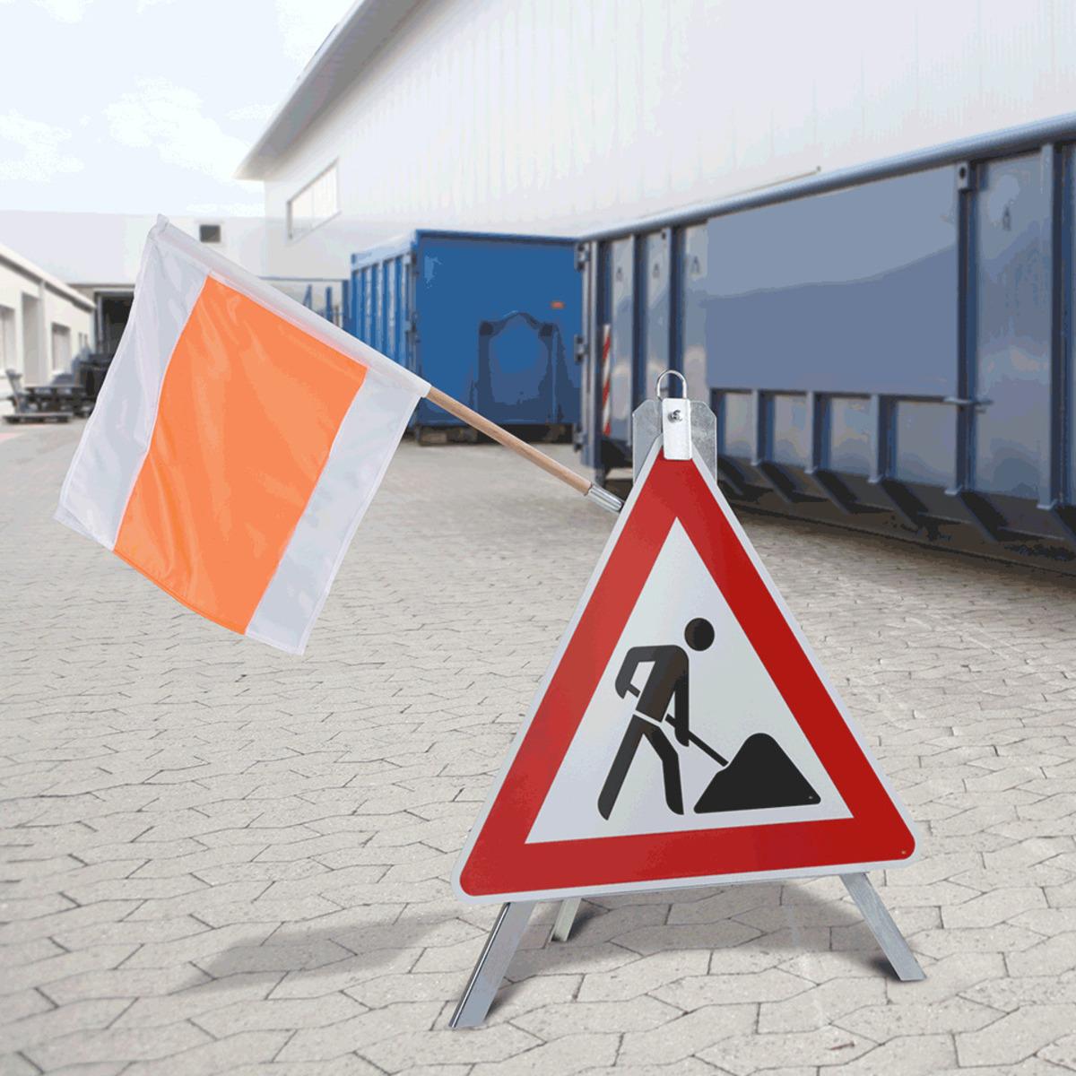 Dieser mittelgroße Dreibein-Schilderständer eignet sich für Bereiche, in denen die Beschilderungen häufig gewechselt werden müssen, beispielsweise Montage-, Wartungs oder Bauarbeiten. Sicherheitskennzeichen und Verkehrszeichen können schnell und problemlos ausgetauscht werden. Der Ständer ist mit einer Trageöse und einem Fahnenschuh zum Einstecken einer Warnflagge ausgestattet und ist kompatibel mit Schilderformaten ab 600 mm Durchmesser.